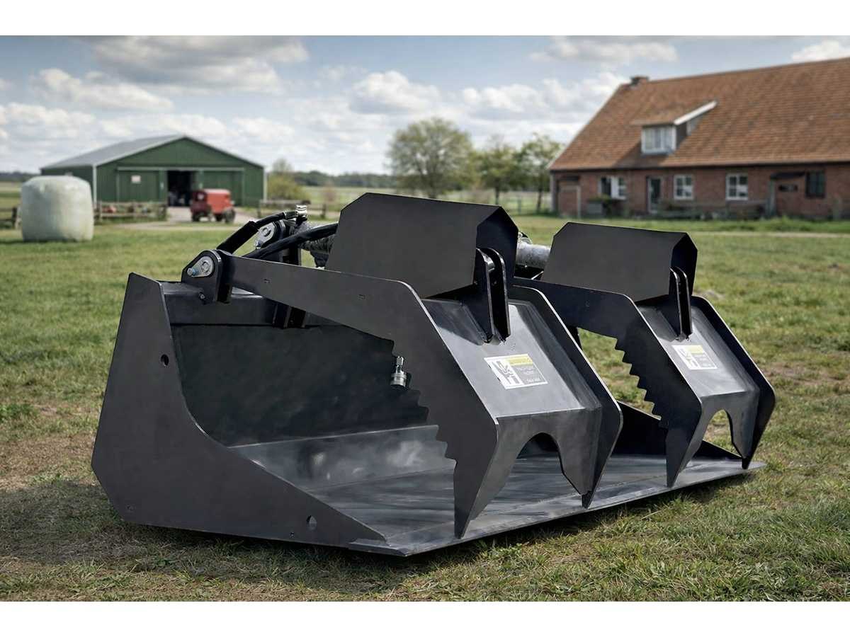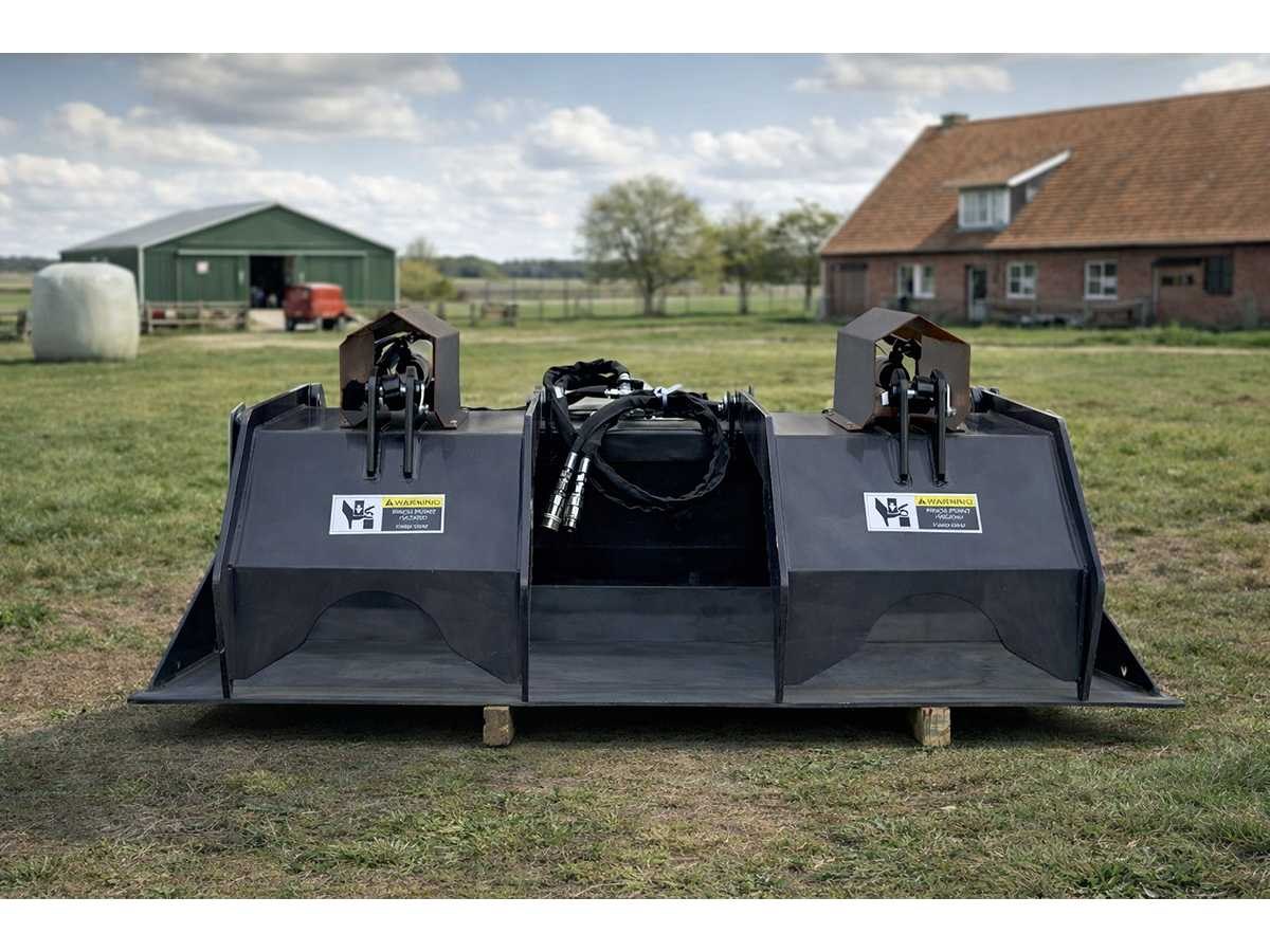 Voorzien van hydraulisch slangenpakket, dubbelwerkende cilinder, werkbreedte 180 cm, werkdruk 17-21 bar, olievolumestroom: 50-75 liter/min. No Merk: Field Industries Type: Grijperbak Bouwjaar: 2025