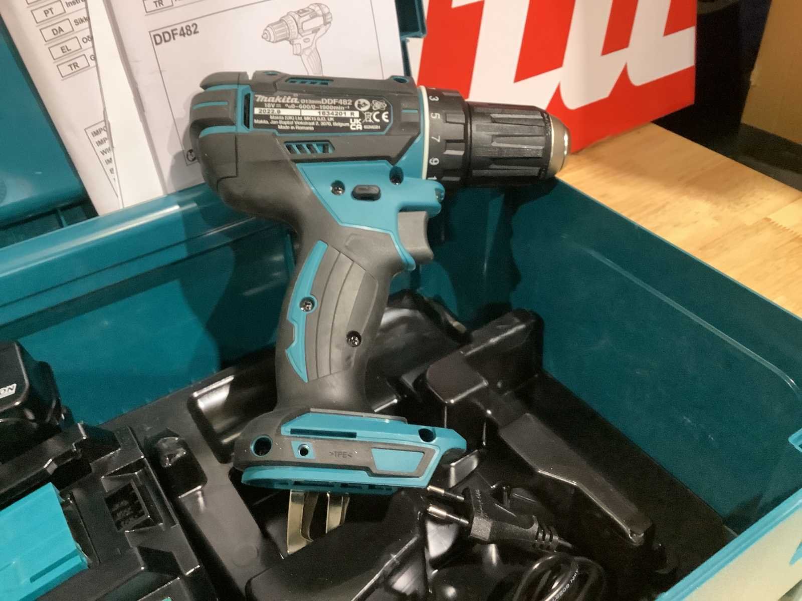 Voorzien van Makita DDF482 accu schroefmachine; Makita DC18RC snellader; 1x Makita 3.0 Ah LXT 18V accu; handleiding; ongebruikt in Makita Makpac / Mbox No Merk: Makita Type: DDF482 18V LXT Spanning: 18V Aantal accu's: 1 Accu lader: true Met koffer: true Schroefmachine: true