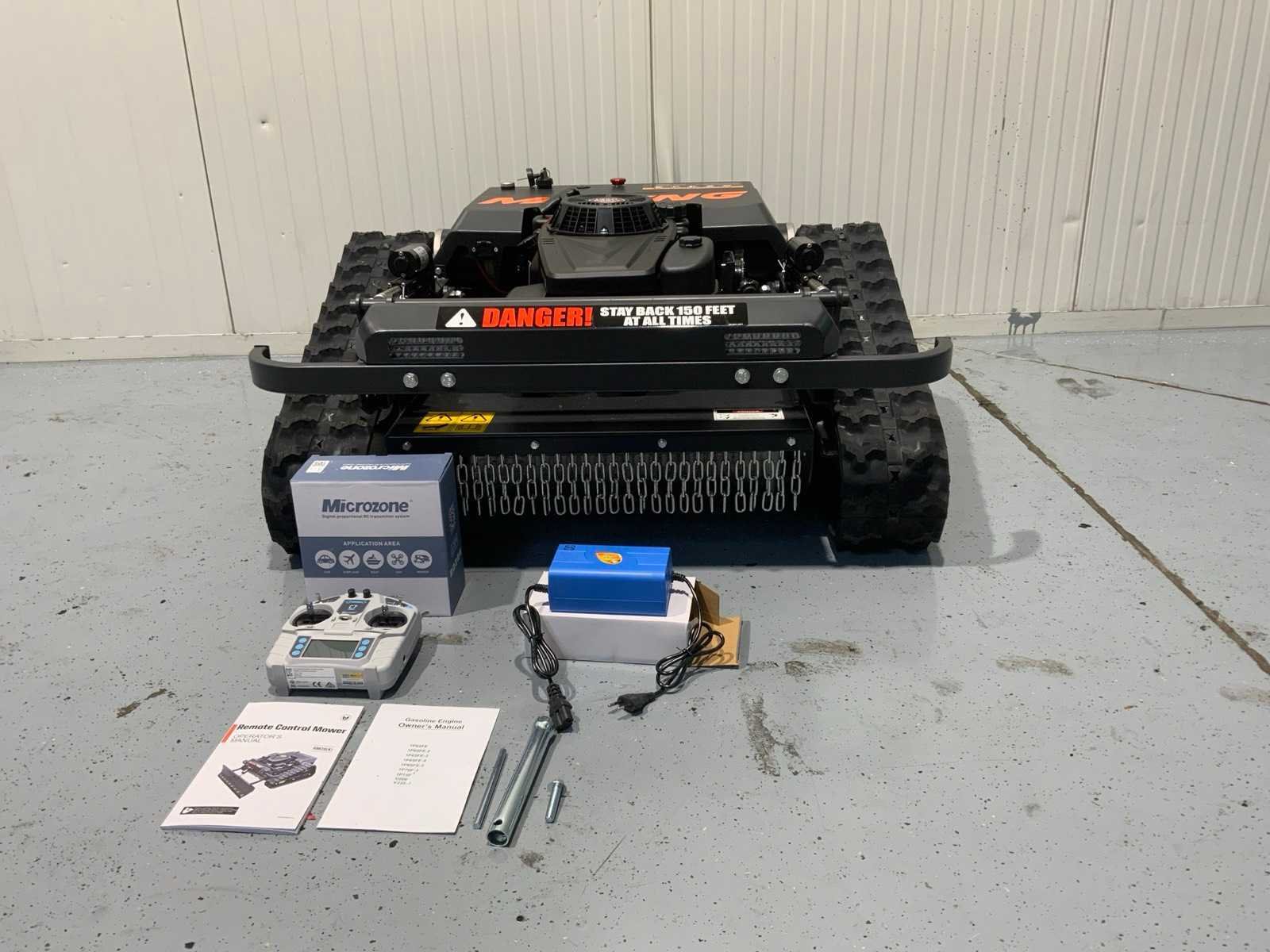 Ongebruikt Motor: 224 cc 4-takt benzinemotor, maaibreedte: 53 cm, maximaal bereik: Tot 600 meter afstand bestuurbaar. Brandstoftank: 1 liter, verbruik: ongeveer 0,7 liter per uur. Maximale hellingshoek: tot 45 graden, maximale snelheid: 3 km/u. Maaihoogte: Instelbaar tussen 3 en 12 cm Besturingssysteem: Afstand bediening via draadloze zender, met een bereik tot 600 meter. Ontwerp: Robuust en geschikt voor hellingen tot 45 graden. Gebruiksgemak: Eenvoudige bediening en instelbaarheid voor optimale maairesultaten. Veiligheid: incl. noodstop en obstakeldetectie voor veilig gebruik op steile hellingen. Een krachtige 224 cc 4-takt motor en een maaibreedte van 53 cm. Nee Merk: Mateng Type: RM20 Bouwjaar: 2026 Werkbreedte: 53cm Zelfrijdend: true Benzinemotor: true Elektrisch aangedreven: true Vermogen (pk): 9 Eigen gewicht: 152kg Totale afmeting L: 100cm Totale afmeting Breedte: 100cm Totale afmeting Hoogte: 48cm