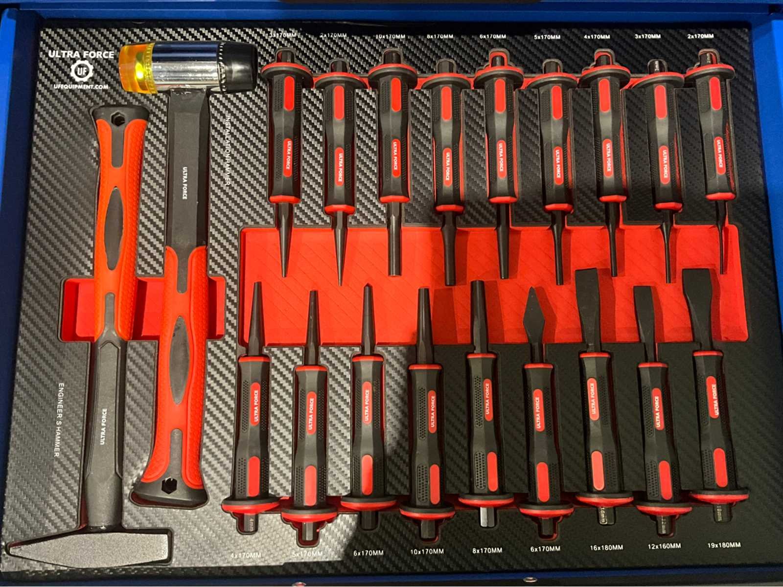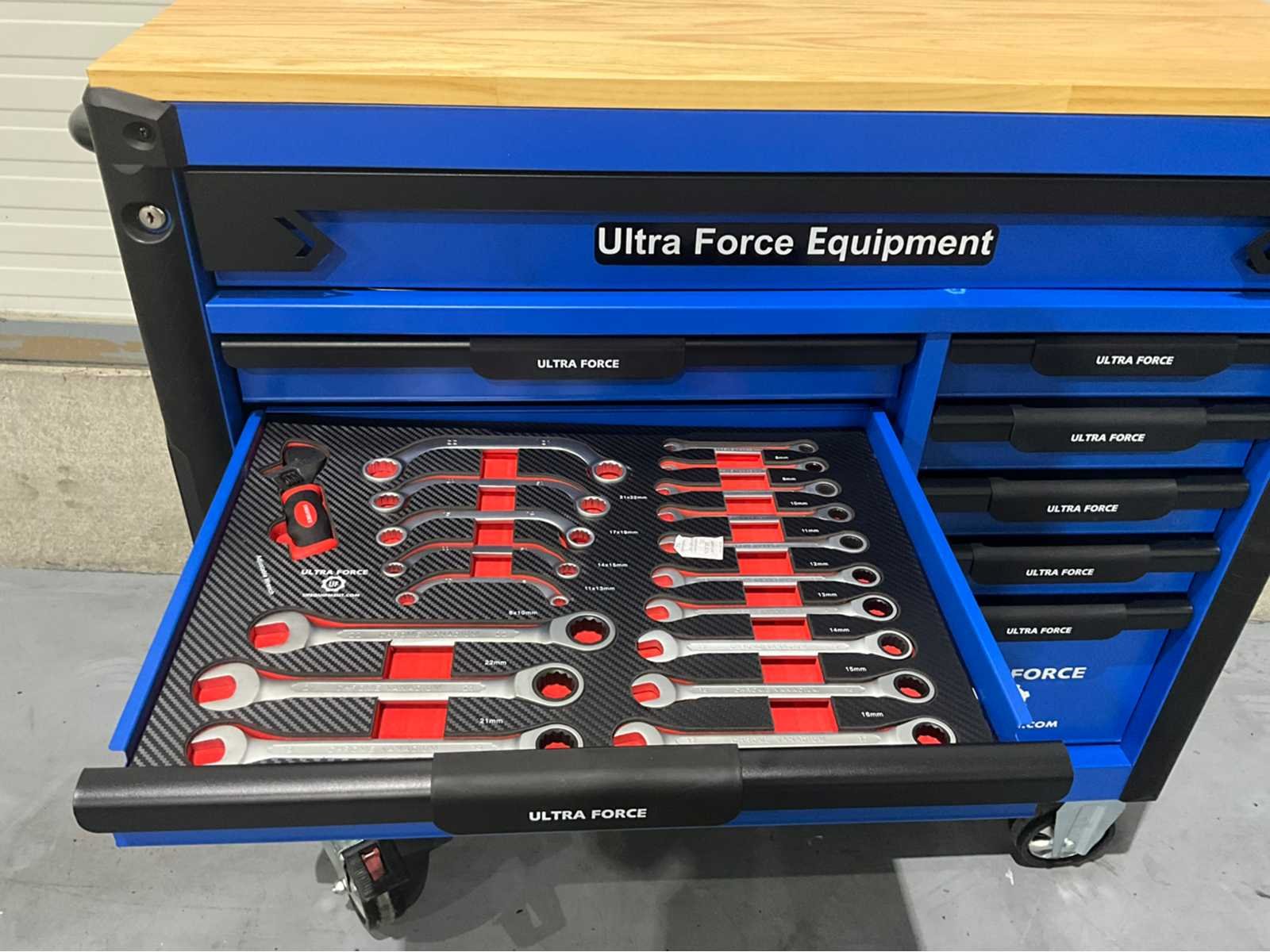 Ongebruikt, in de originele verpakking Aantal laden: 12 laden Aantal gevulde laden: 11 gevulde laden Gereedschap: Chrome Vanadium gereedschap Inhoud: 2 dopsleutel sets (1/2” & 1/4”) Momentsleutel (40-220 Nm) Impact-doppen (10-22 mm) Ringsteeksleutel set (6-32 mm) Ringratelsleutel set (8-19 mm) Inbussleutel set (1,5-10 mm) Ringsleutel set (6-32 mm) Torx sleutel set (T8-T70) Schroevendraaier set (21 stuks) Tangen set (9 stuks) Beitel en doorslagen set (18 stuks) Vijlen set (5 stuks) T-greep dopsleutel set (7-14 mm) T-greep torx sleutel set (T15-T45) Hamers (3 stuks) VDE gereedschap (3 tangen en 7 schroevendraaiers) Enzovoort... Nee Merk: Ultra Force Type: Jumbo Deluxe Bouwjaar: 2026 Aantal laden: 12 Met inhoud: true Eigen gewicht: 132kg Totale afmeting L: 1120mm Totale afmeting Breedte: 500mm Totale afmeting Hoogte: 1040mm