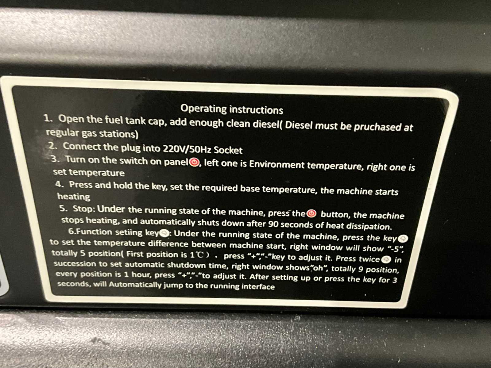 Ongebruikt Model JW360-D Artikelnummer JW360-D Vermogen 50.000 W Brandstof Diesel / Benzine Spanning 220 V Frequentie 50 Hz Luchtvolume 1100 m³/u Brandstoftank 56 L Instelbare hoogte Ja Automatisch uitschakelen Ja Klimaatbeheersing Verwarmen, Ontvochtigen, Koelen Nee Merk: Jungwille Type: JW-360-D Bouwjaar: 2026 Brandstof: Diesel