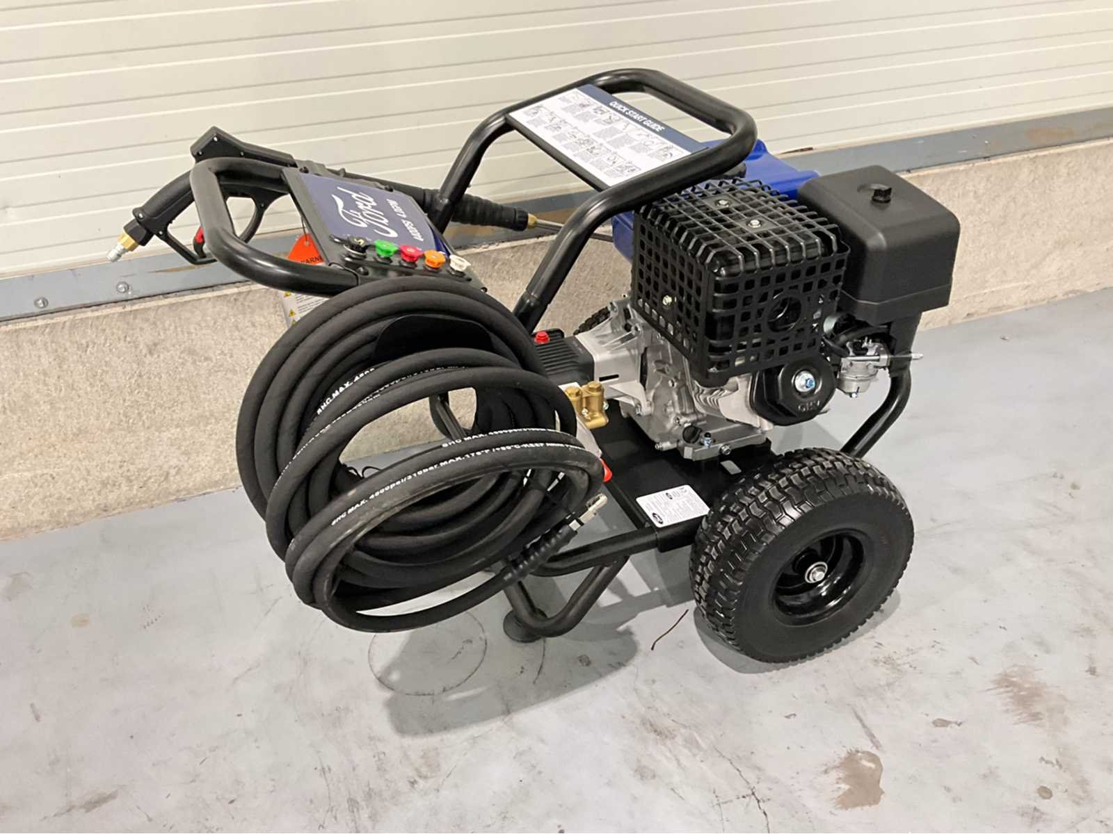 Ongebruikt * Fabrikant Ford * Productcode FPWG44T-UK * Max. druk 4400 psi (303 bar) * Max. debiet 15,9 L/min * Max. watertemperatuur 40°C * Netvoeding * Geschikt voor reinigingsmiddelen Ja - Inclusief doseerslang * Sproeiers 0°, 15°, 25°, 40° en zeepsproeier * Slanglengte 15 meter hogedrukslang * Brandstoftype Benzine * Brandstofcapaciteit 6 liter. 5 liter * Motortype kopklepper * Motorgrootte 420cc * Motorolie 10w30 * Gewicht 72,25 KG * Geluidsniveau op 7m 80 dB(A) * Afmetingen (BxHxL) 620 x 730 x 950mm Nee Merk: Ford Type: FPWG44T Bouwjaar: 2026 Maximale werkdruk: 300bar Mobiel: true Eigen gewicht: 72kg Totale afmeting L: 620mm Totale afmeting Breedte: 730mm Totale afmeting Hoogte: 950mm