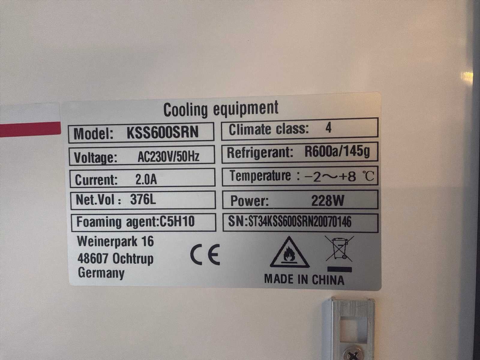 Nee Merk: GGMGASTRO Type: KSS600SRN Serienummer: ST34KSS600SRN20070146 Aansluiting: 230V Totale afmeting L: 730mm Totale afmeting Breedte: 780mm Totale afmeting Hoogte: 1850mm