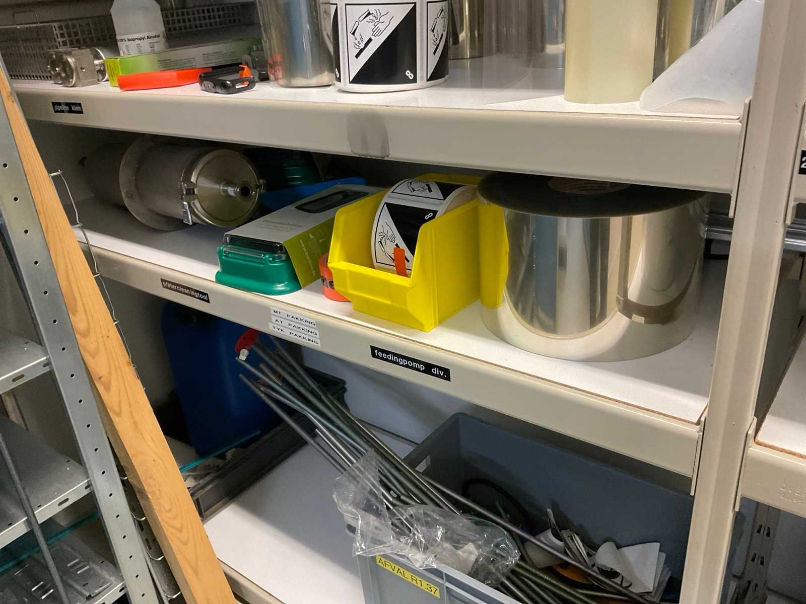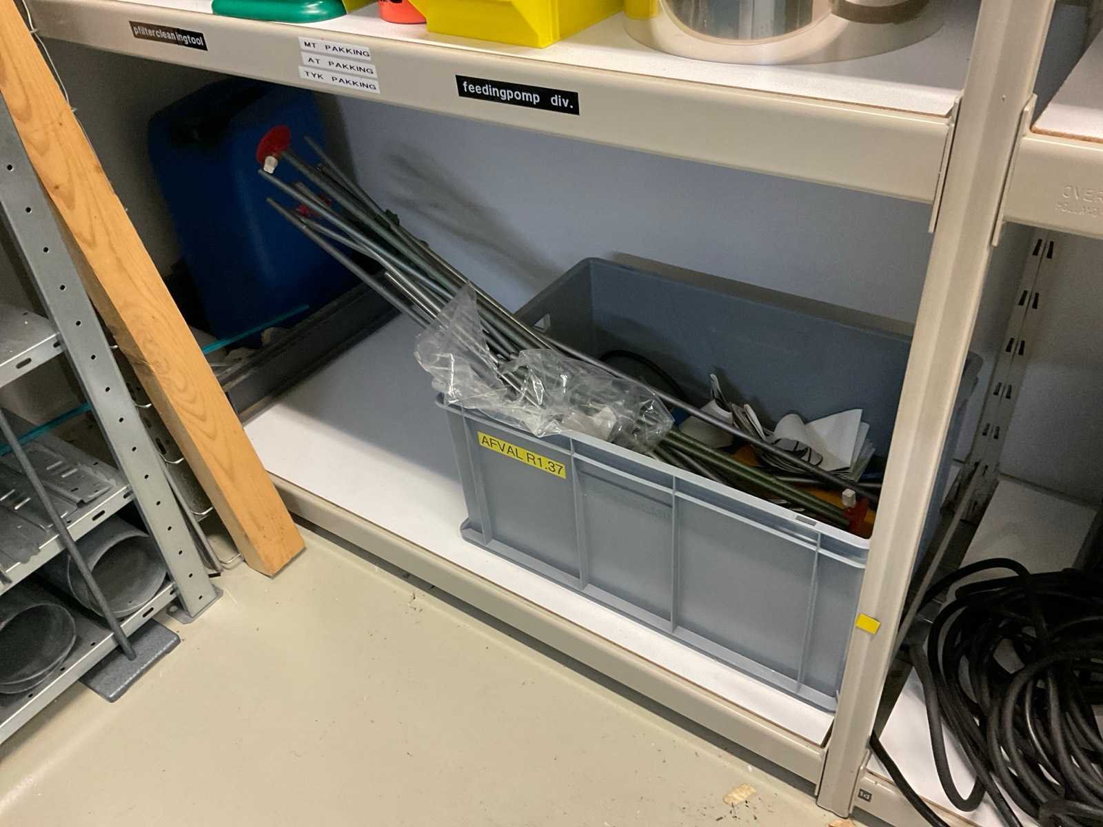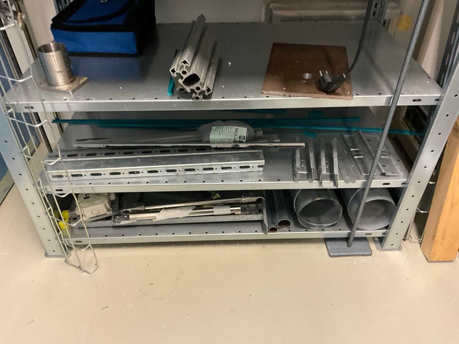Bestaande uit onder andere: magazijnstelling 300x60x210 cm demontabel, magazijnstelling 105x54x200 cm demontabel, inhoud magazijnstelling. Nee