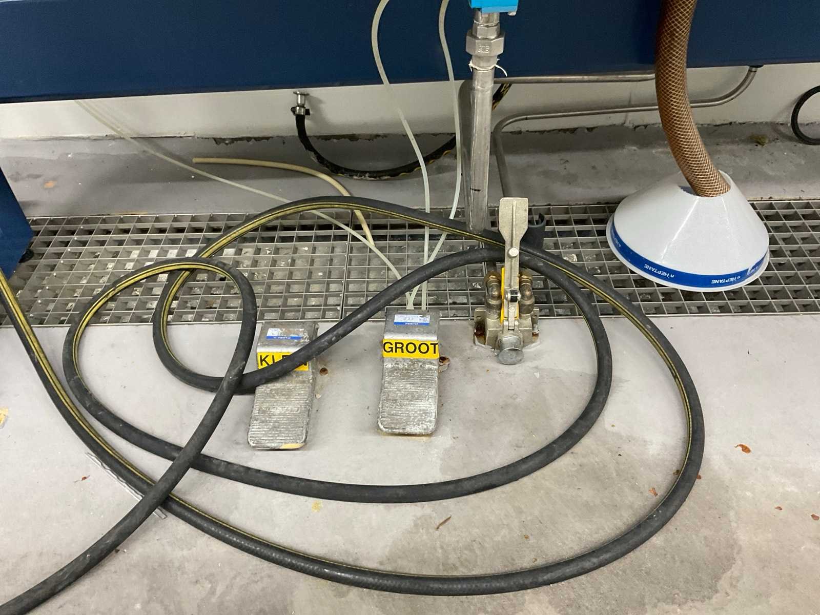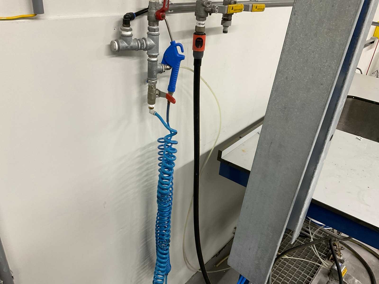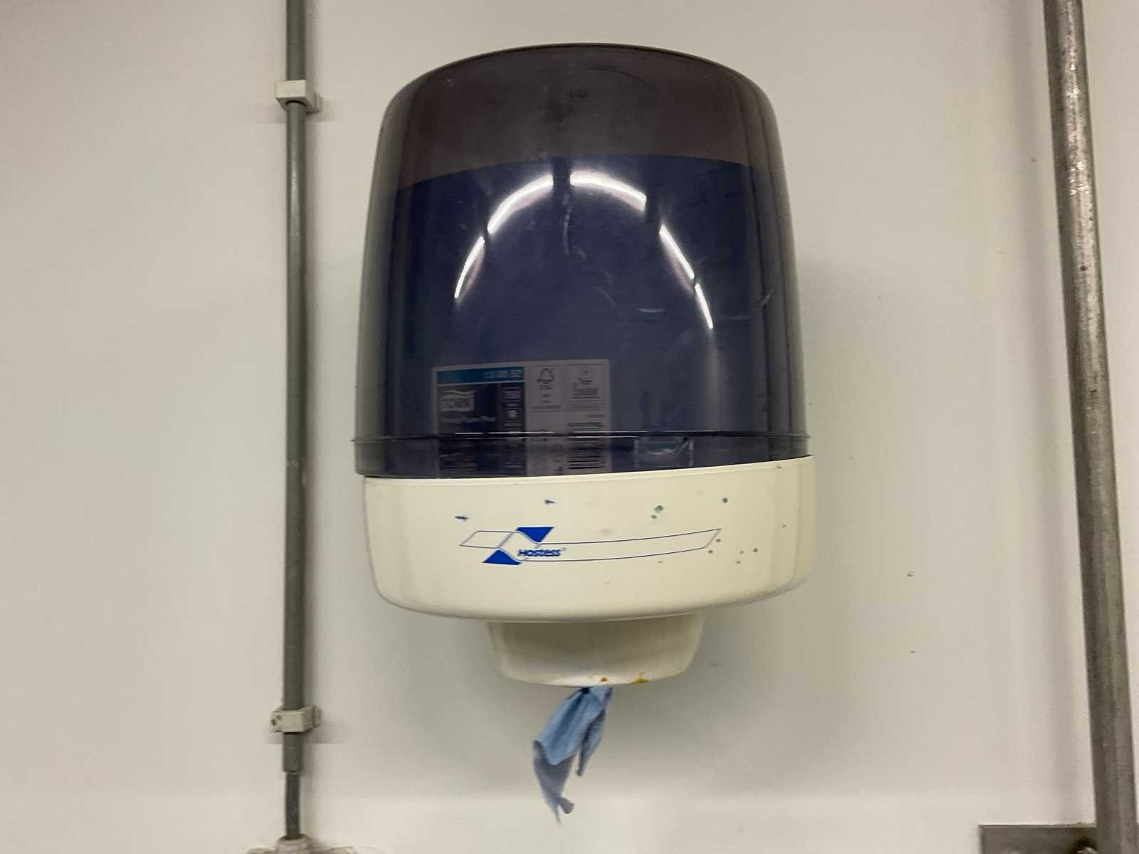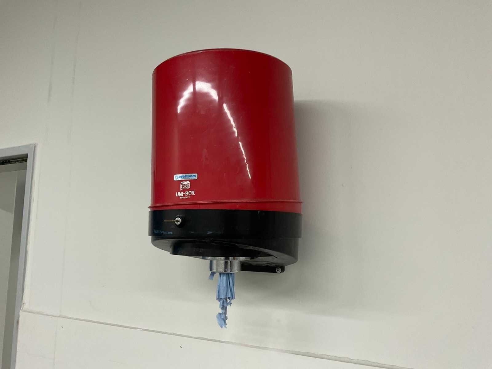 Ruimte bestaande uit onder andere: werktafel met kasten 420x75x94 cm, handdoek dispenser, werkkast 120x40x205 cm bevestigd aan de muur, spoelbak 180x75x94 cm, zonder kranen, handdoek dispenser, items op tafel, kastje 52x55x72 cm. Nee