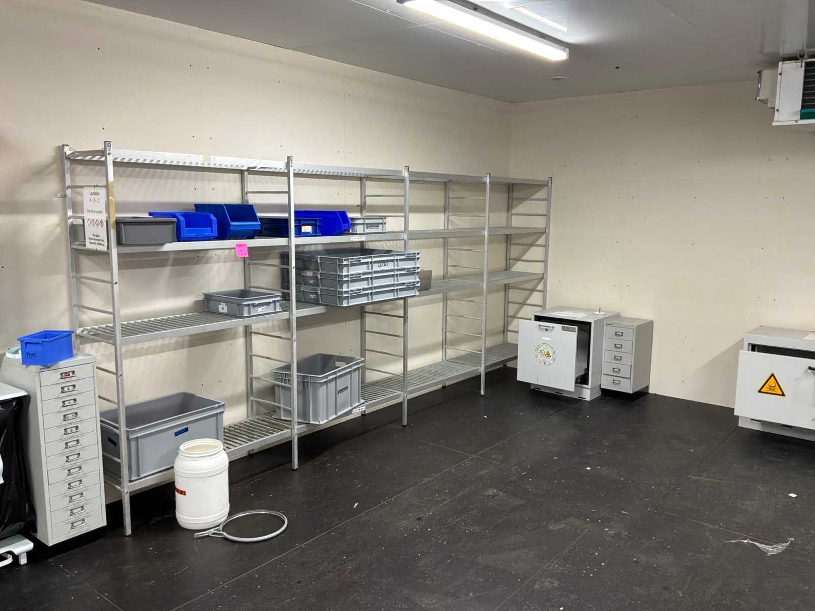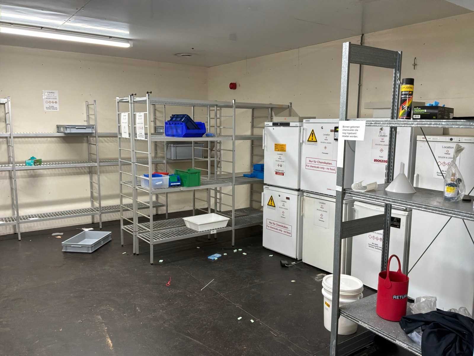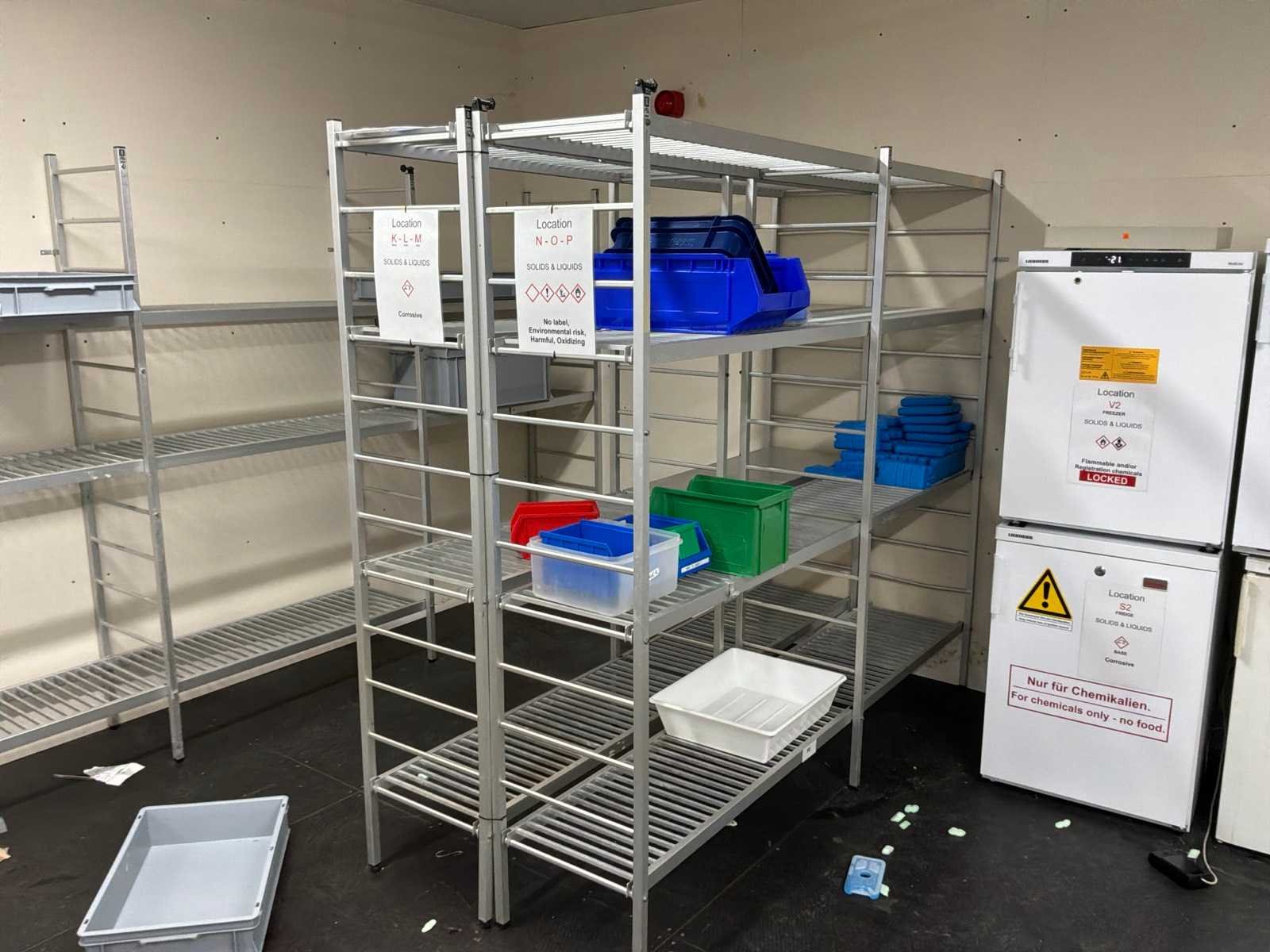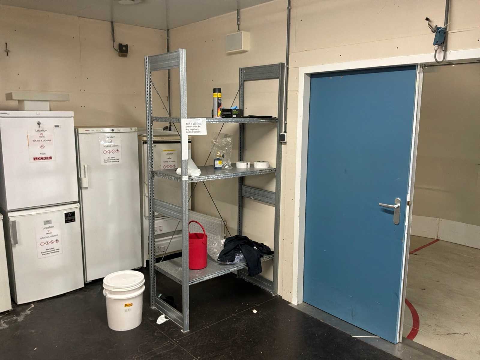 2x opslagkasten, 4x liebherr koelkast, 2x bosch koelkast, 1x bauknecht koelkast, 1x santo koelkast, 5x jumbo aluminium stelling. Nee Totale afmeting L: 3500mm Totale afmeting Breedte: 450mm Totale afmeting Hoogte: 1950mm