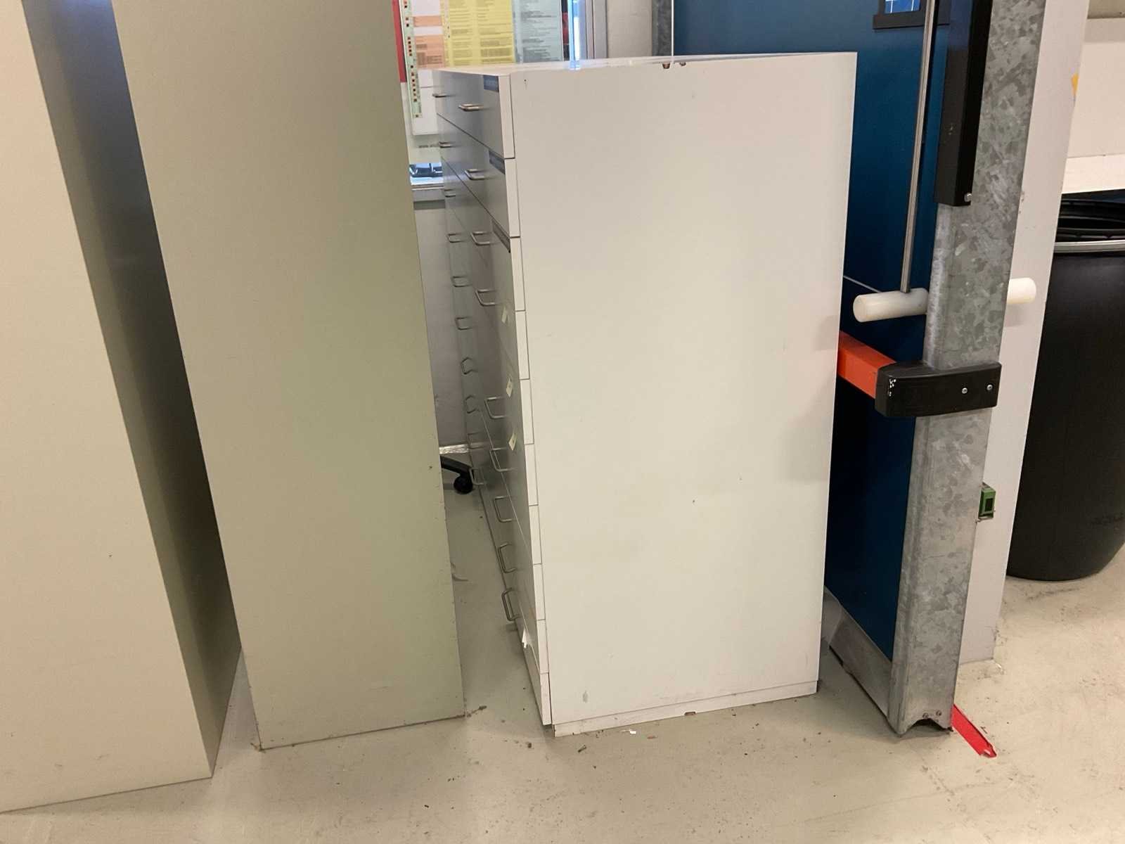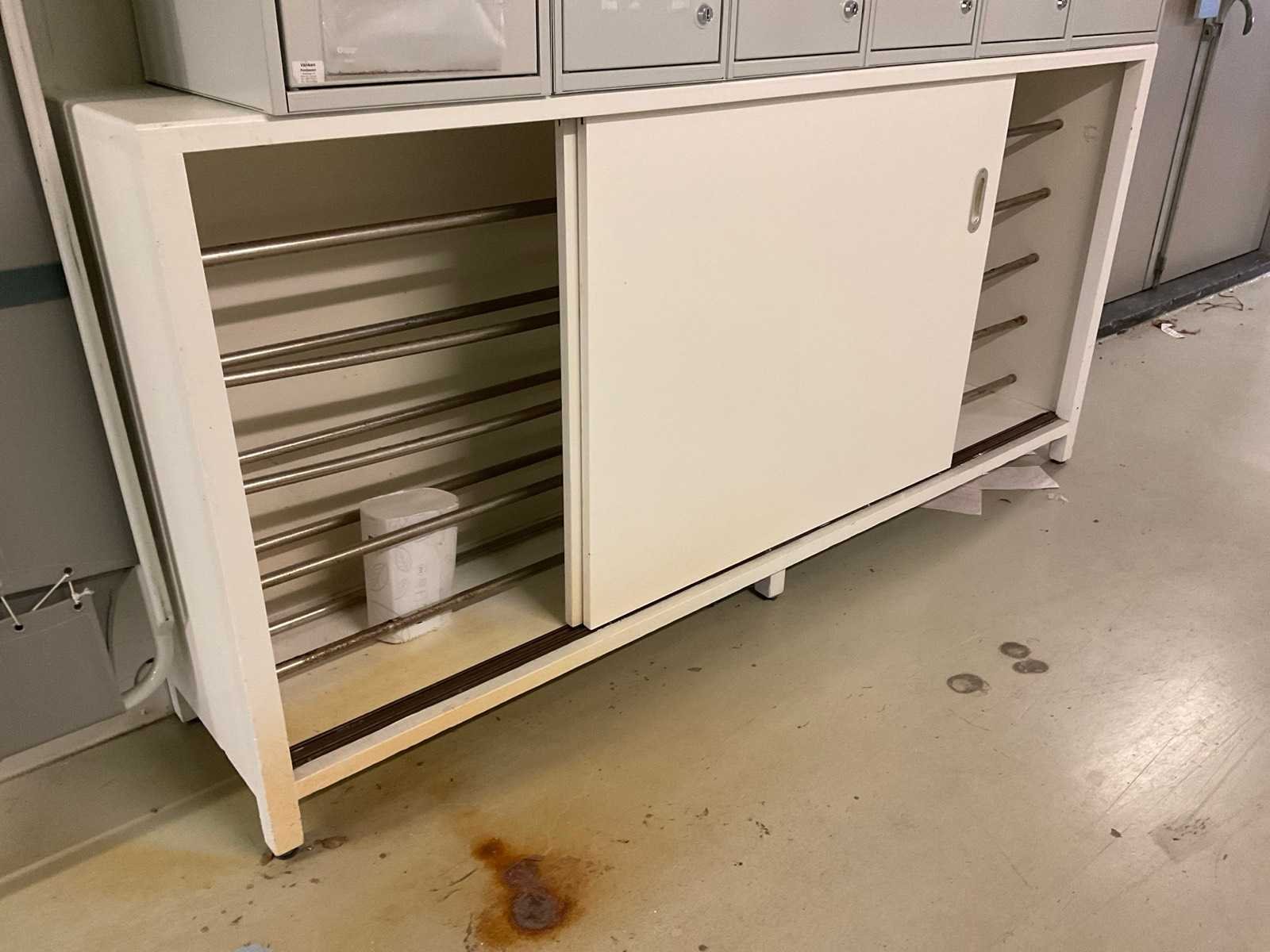 Bestaande uit onder andere: deurkasten, schuifkasten, ladekasten, hangkast, postkast, met inhoud. Nee