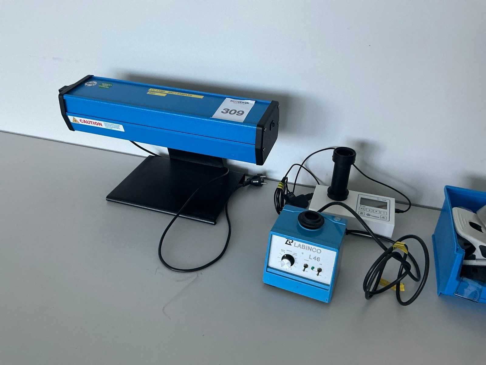 Bestaande uit onder andere: UV lamp, Hygiena Pi-102 Luminometer, Labinco L46 vortexmixer. Inclusief papierhouder, magazijnbak met kantoorinventaris, en philips radio Nee