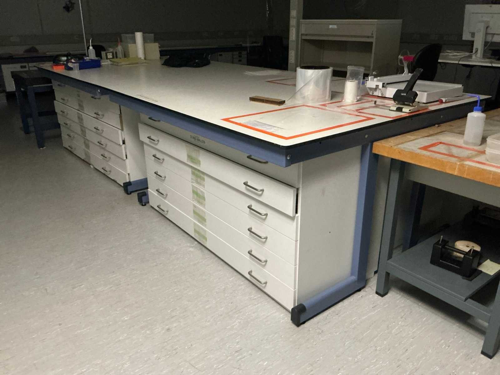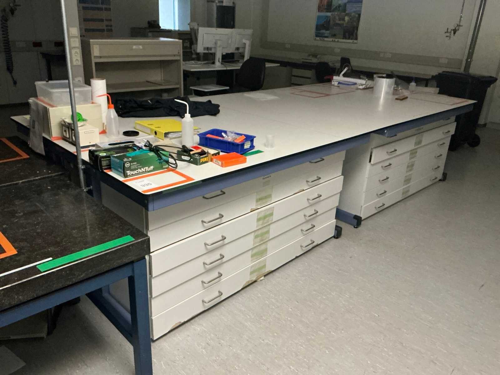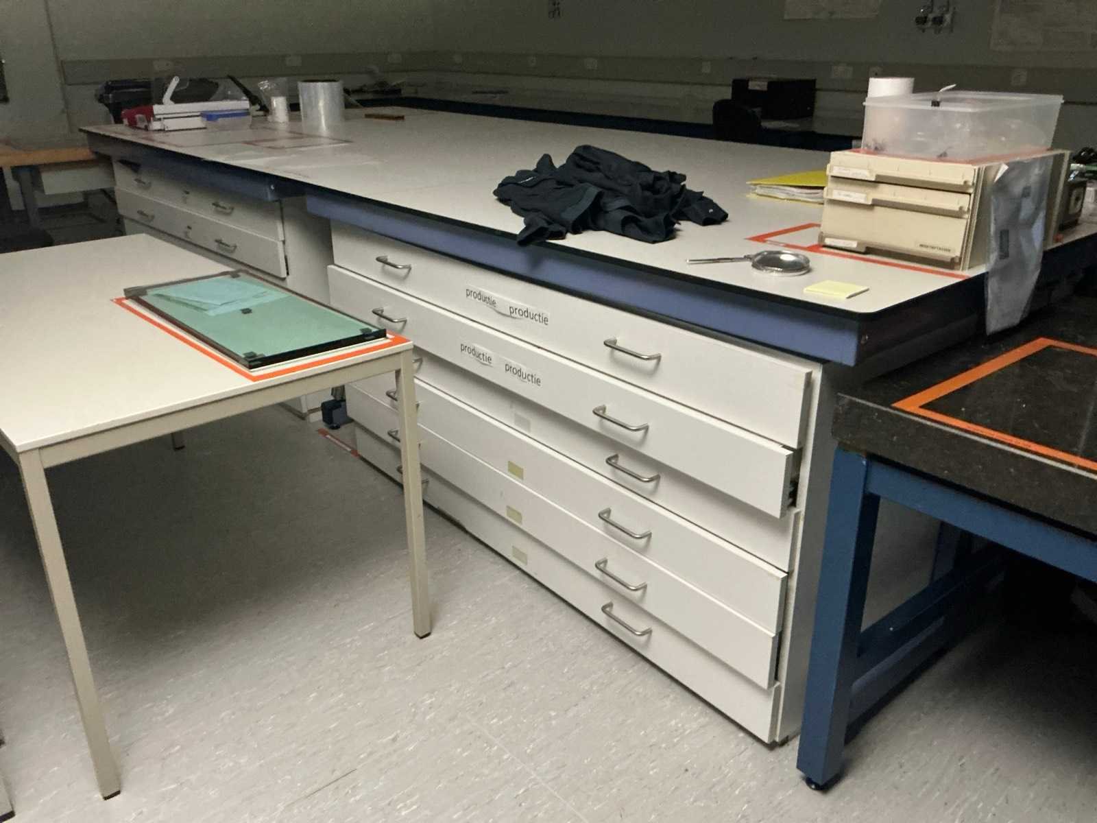 Voorzien van ladekasten, (LxBxH:4000x1700x950mm) . Artikelen op tafel niet inbegrepen. Inclusief werktafel. Voorzien van 2 lades en houten werkblad Nee