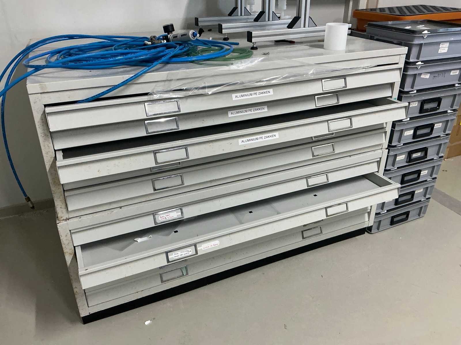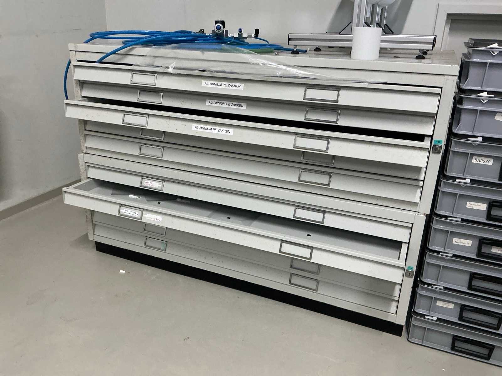 Bestaande uit 2x legbordstelling, 1x ladekast. Artikelen in en op stelling en kast niet inbegrepen Nee