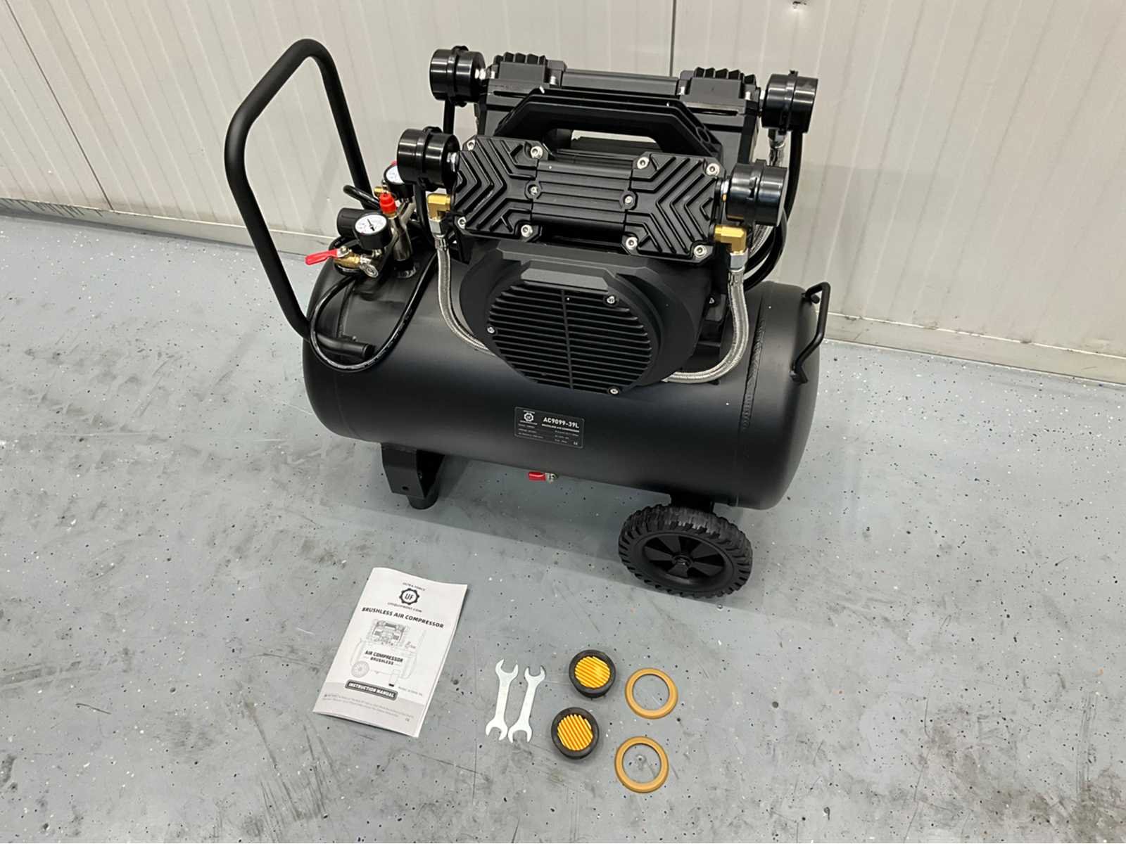 Compressor Brushless - power 4000W - Air tank 39liter Voltage AC220v Air Delivery 700L/min Pressure 0,3-1.0Mpa Nee Merk: Ultra Force Equipment Type: AC9099-39L Bouwjaar: 2026 Buffertank inhoud: 39l Eigen gewicht: 29kg