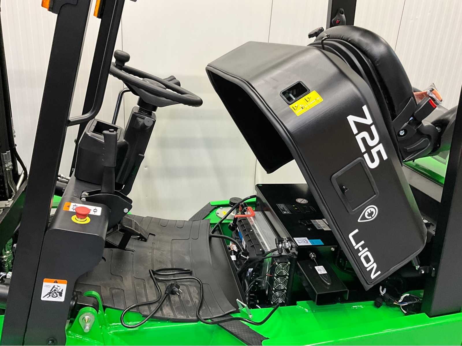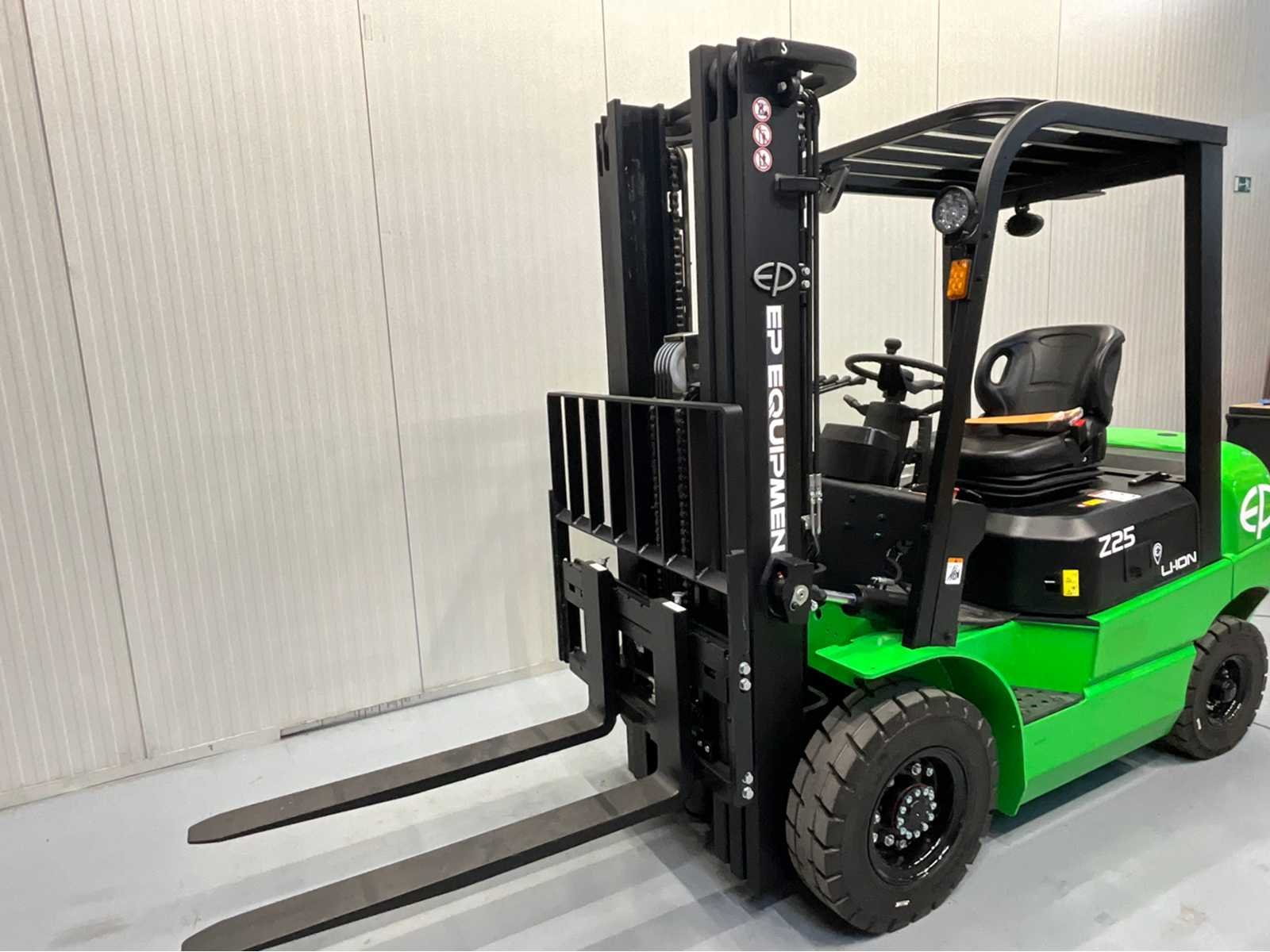 De EP EFXZ-251 Greenline is een krachtige en moderne elektrische heftruck die uitblinkt in prestaties, betrouwbaarheid en gebruiksgemak. Met een hefvermogen van 2500 kg en een grote lithiumaccu van 280Ah is deze heftruck perfect geschikt voor intensief dagelijks gebruik in magazijnen en industriële omgevingen. Dankzij de triplex mast met freelift bereikt de truck een hefhoogte tot 4,80 meter, ideaal voor werken in lage doorgangen zonder concessies te doen aan het hefbereik. De geïntegreerde side-shift en 4e vrije functie zorgen voor maximale flexibiliteit bij het werken met aanbouwdelen. Op het gebied van veiligheid en comfort is deze heftruck zeer compleet uitgerust met LED-verlichting rondom, een bluespot, een zwaailamp en een overzichtelijk display. De interne 220V lader maakt opladen eenvoudig: inpluggen en klaar. Specificaties & uitrusting Hefvermogen: 2500 kg NIEUW – Greenline uitvoering Lithium accu: 280Ah (grote capaciteit) Triplex mast met freelift Hefhoogte: 4.800 mm Geïntegreerde side-shift 4e vrije hydraulische functie LED-verlichting rondom + bluespot Zwaailamp Ingebouwde 220V stekker / interne lader Duidelijk functiescherm (display) Nee Merk: EP Type: EFXZ-251 Bouwjaar: 2025 Brandstof: Elektrisch Mast: Triplex Aantal wielen: 4 Accu lader: true Free-lift: true Side-shift: true Triple mast: true Eigen gewicht: 4094kg Hefvermogen: 2500kg Lepellengte: 1150mm Max. hefhoogte: 4800mm Hefhoogte: 4800mm Vol rubber banden: true Minimale doorrijhoogte: 2300mm Totale afmeting L: 3400mm Totale afmeting Breedte: 1100mm Totale afmeting Hoogte: 2300mm