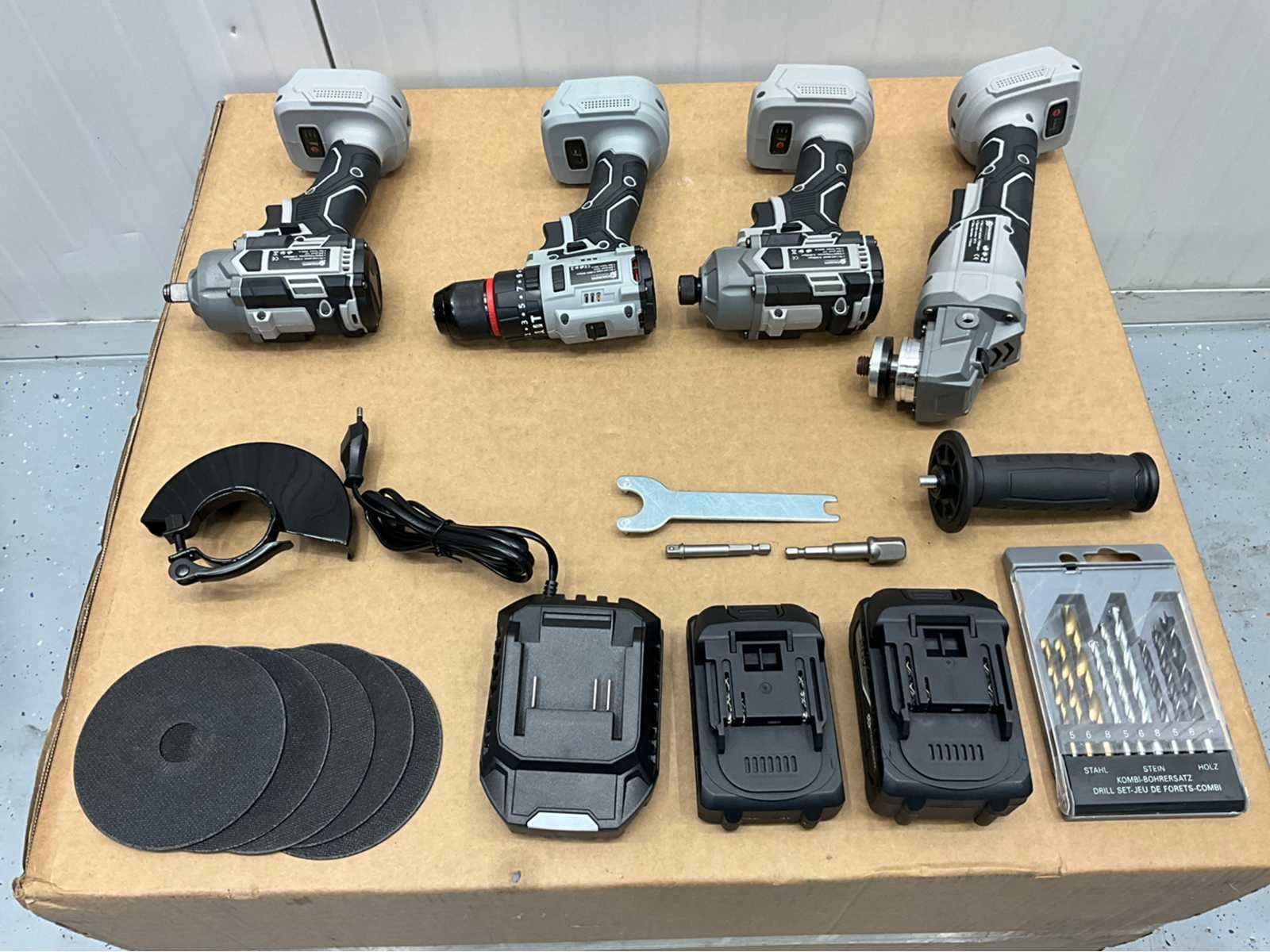 Stahlgruppe - powertool set, schroefmachine, boormachine, slagmoersleutel, haakse slijper, 2 accu’s