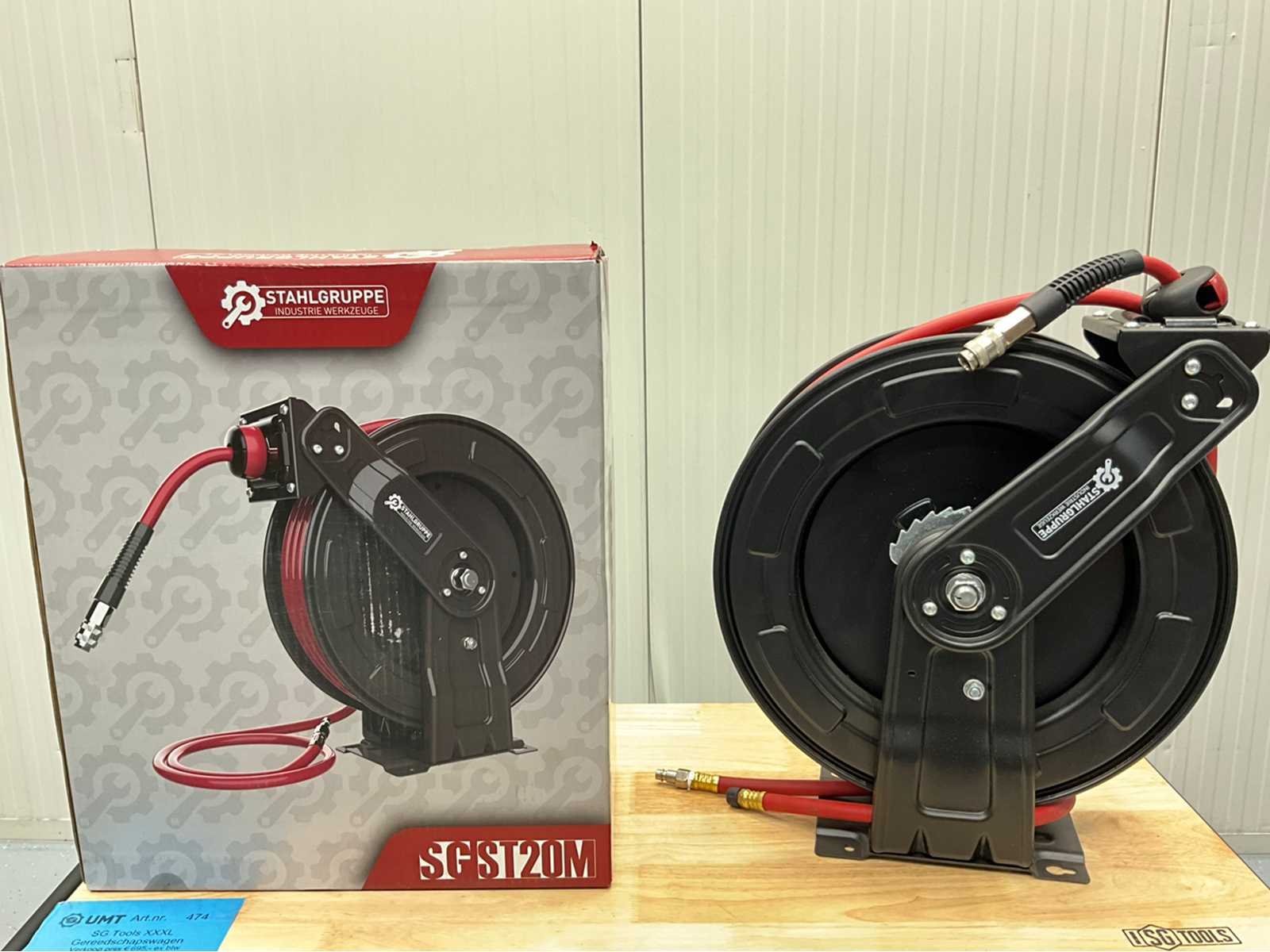 2 meter Inlaatslang, 20 meter uitlaatslang, 9,5 mm slangdiameter 17 BAR Max druk Verstelbare stop bal Duurzame materialen Automatisch oprolsysteem Montagemateriaal inbegrepen Ongebruikt Nee Merk: Stahlgruppe Type: SGST20M Bouwjaar: 2026