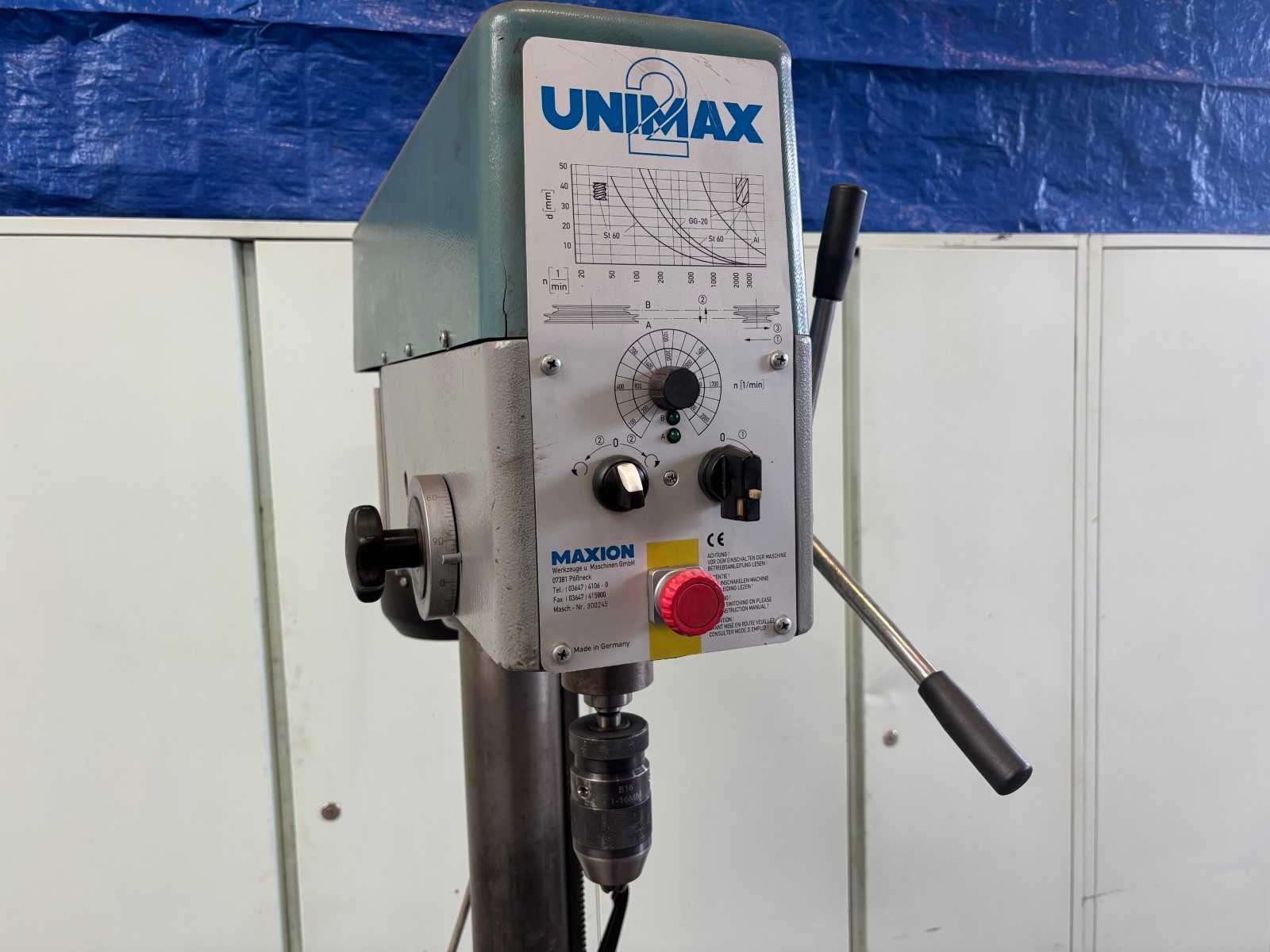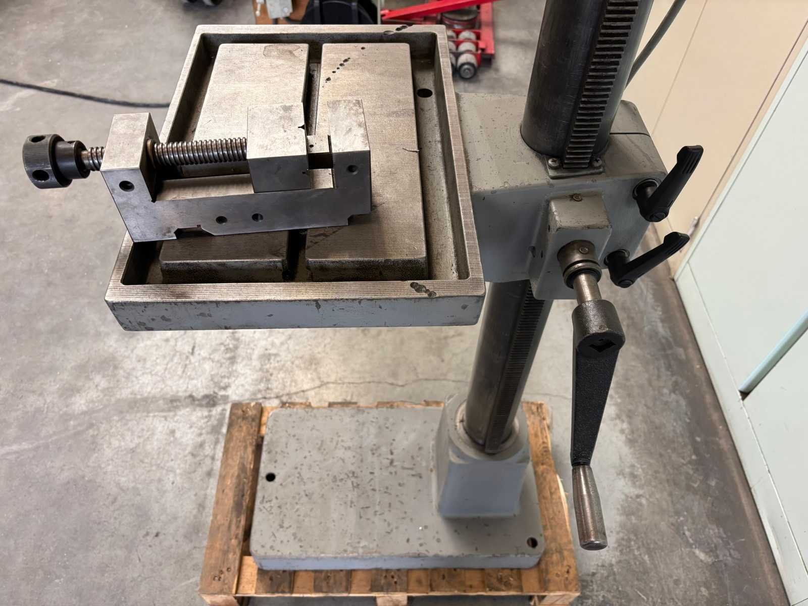 Zgan kolomboormachine 230V Nee Merk: Maxion Type: Unimax 2BS Boorcapaciteit: 23mm Aantal snelheden: 2 Spindelsnelheid van n =: 100rpm Spindelsnelheid tot n =: 4000rpm Toerental traploos: true Boordiepte: 100mm Uitlading: 225mm Opname mc: 2 Tafel afmeting l: 450mm Tafel afmeting b: 315mm Motorvermogen (kW): 1,5kW Aansluiting: 230V Machinegewicht: 300kg