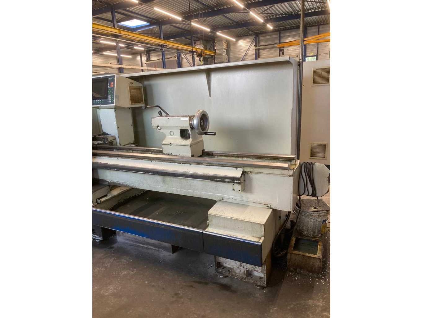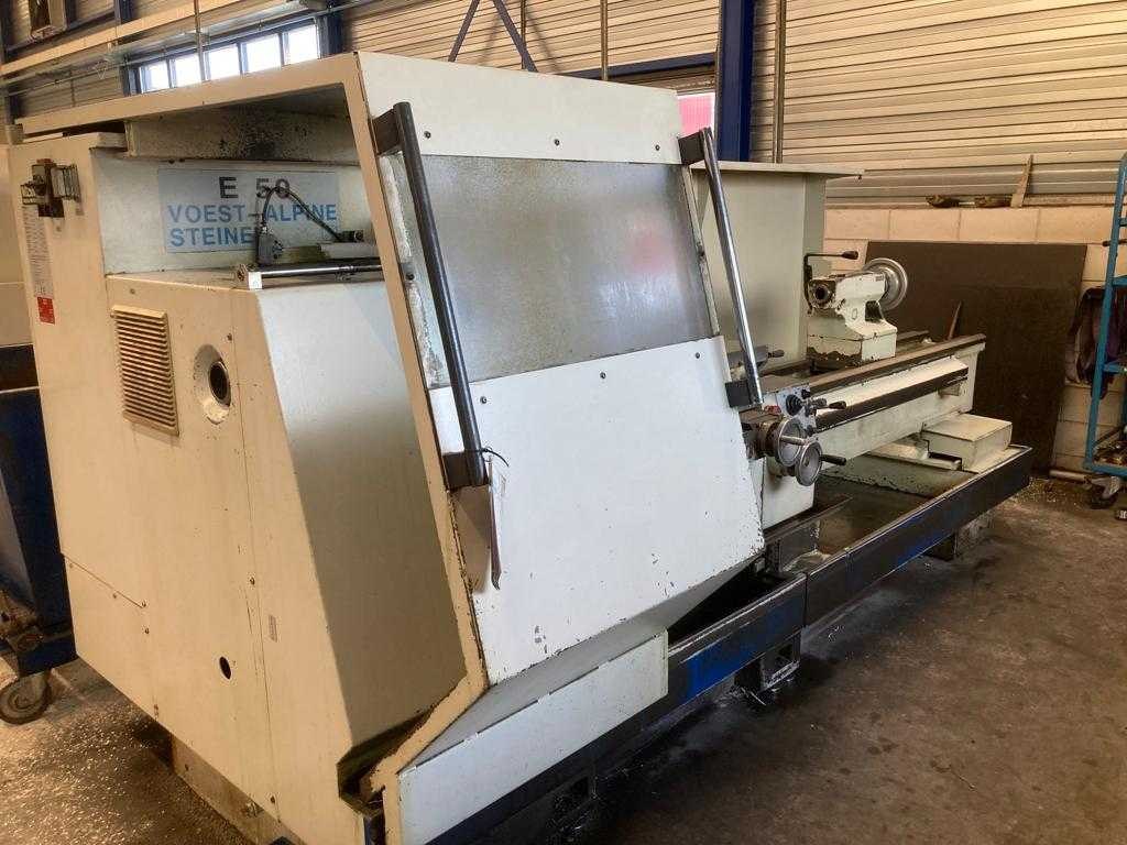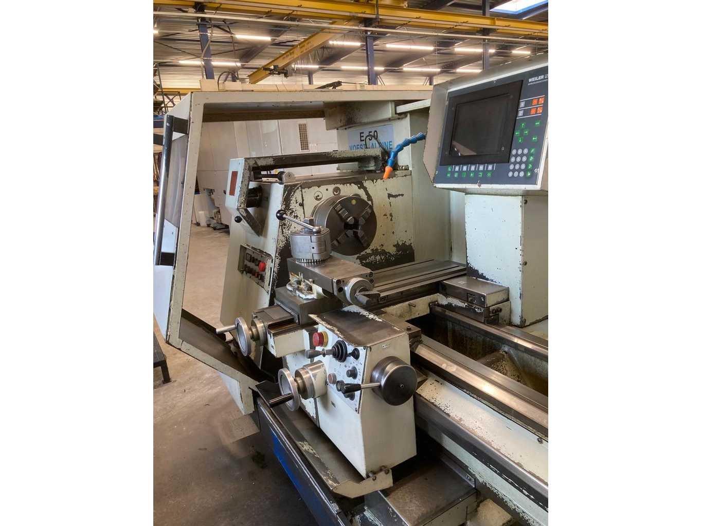 Machine is getest op werking inclusief 3-klauwplaat, 6 snelwisselhouders, koeling Nee Merk: Weiler Type: E50 Bouwjaar: 1996 Draailengte: 2000mm Draai: 570mm Holle spil Ø: 66mm Aantal snelheden: 2 Snelheid van n =: 0rpm Snelheid tot n =: 2500rpm Koelmiddelpomp: true Besturing, merk, type: Weiler Motorvermogen (kW): 15kW Aansluiting: 400 Machinegewicht: 3500kg Afmeting l: 3850mm Afmeting b: 1850mm Afmeting h: 1750mm