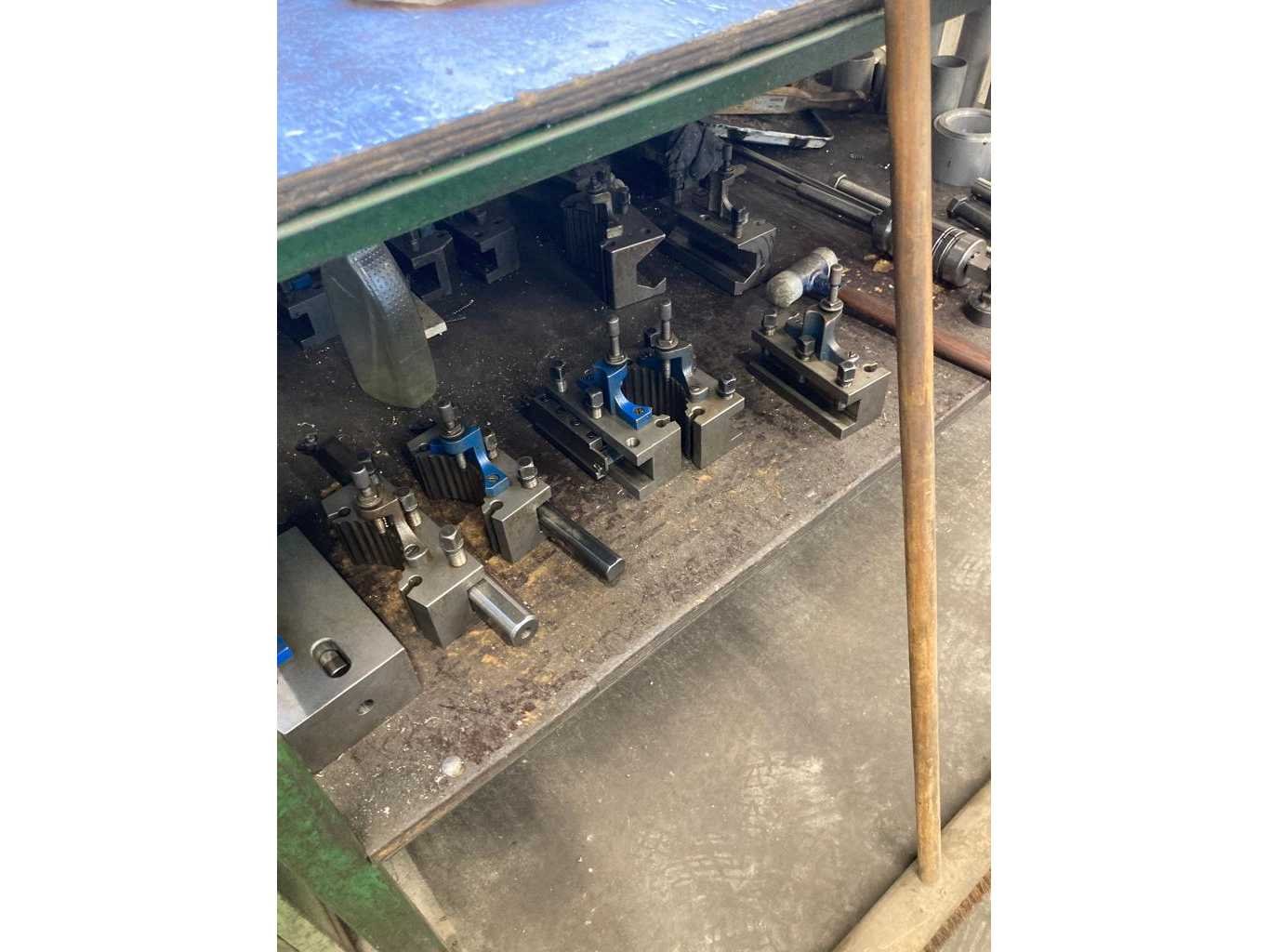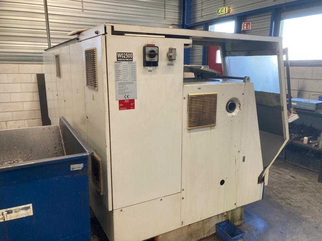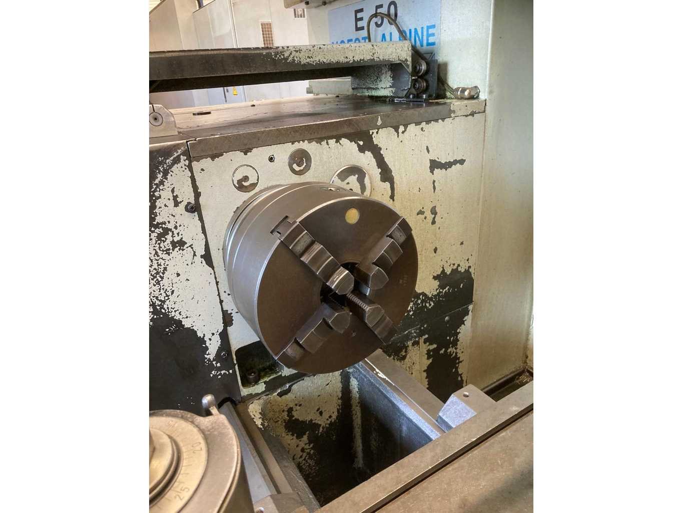 Machine is getest op werking inclusief 3-klauwplaat, 6 snelwisselhouders, koeling Nee Merk: Weiler Type: E50 Bouwjaar: 1996 Draailengte: 2000mm Draai: 570mm Holle spil Ø: 66mm Aantal snelheden: 2 Snelheid van n =: 0rpm Snelheid tot n =: 2500rpm Koelmiddelpomp: true Besturing, merk, type: Weiler Motorvermogen (kW): 15kW Aansluiting: 400 Machinegewicht: 3500kg Afmeting l: 3850mm Afmeting b: 1850mm Afmeting h: 1750mm