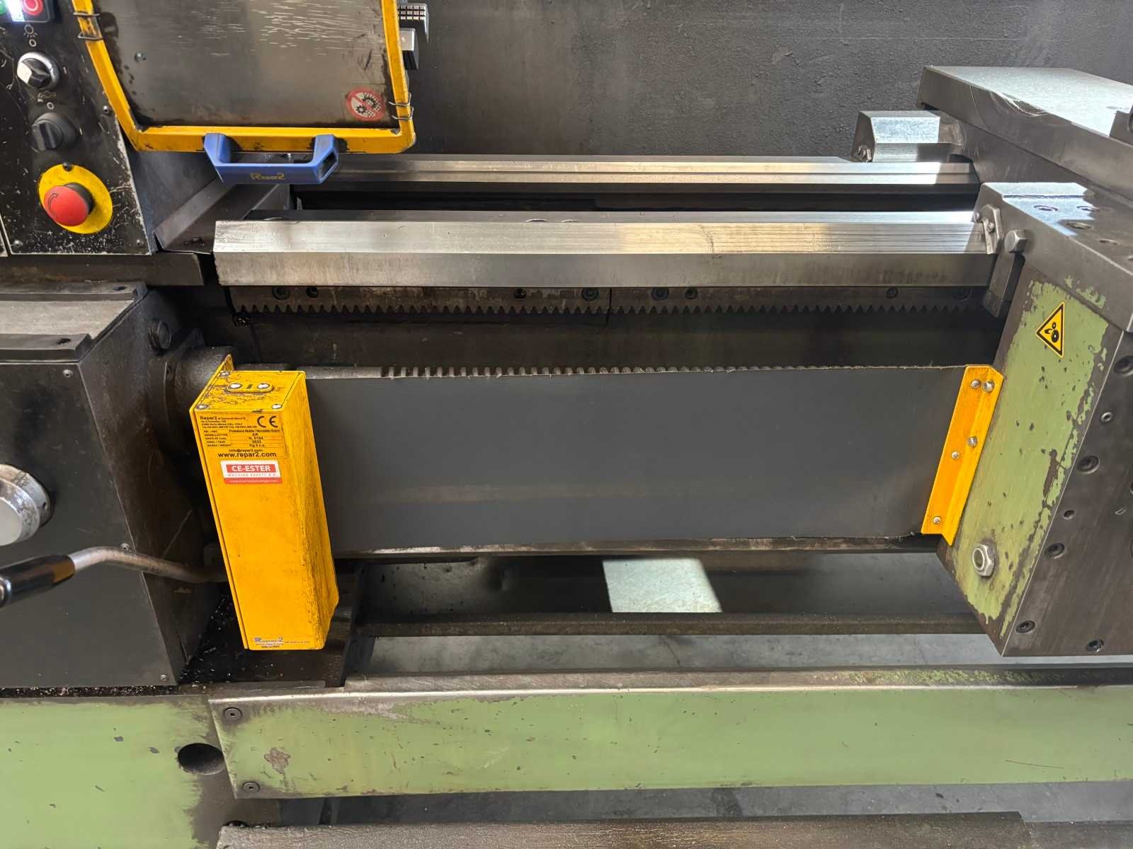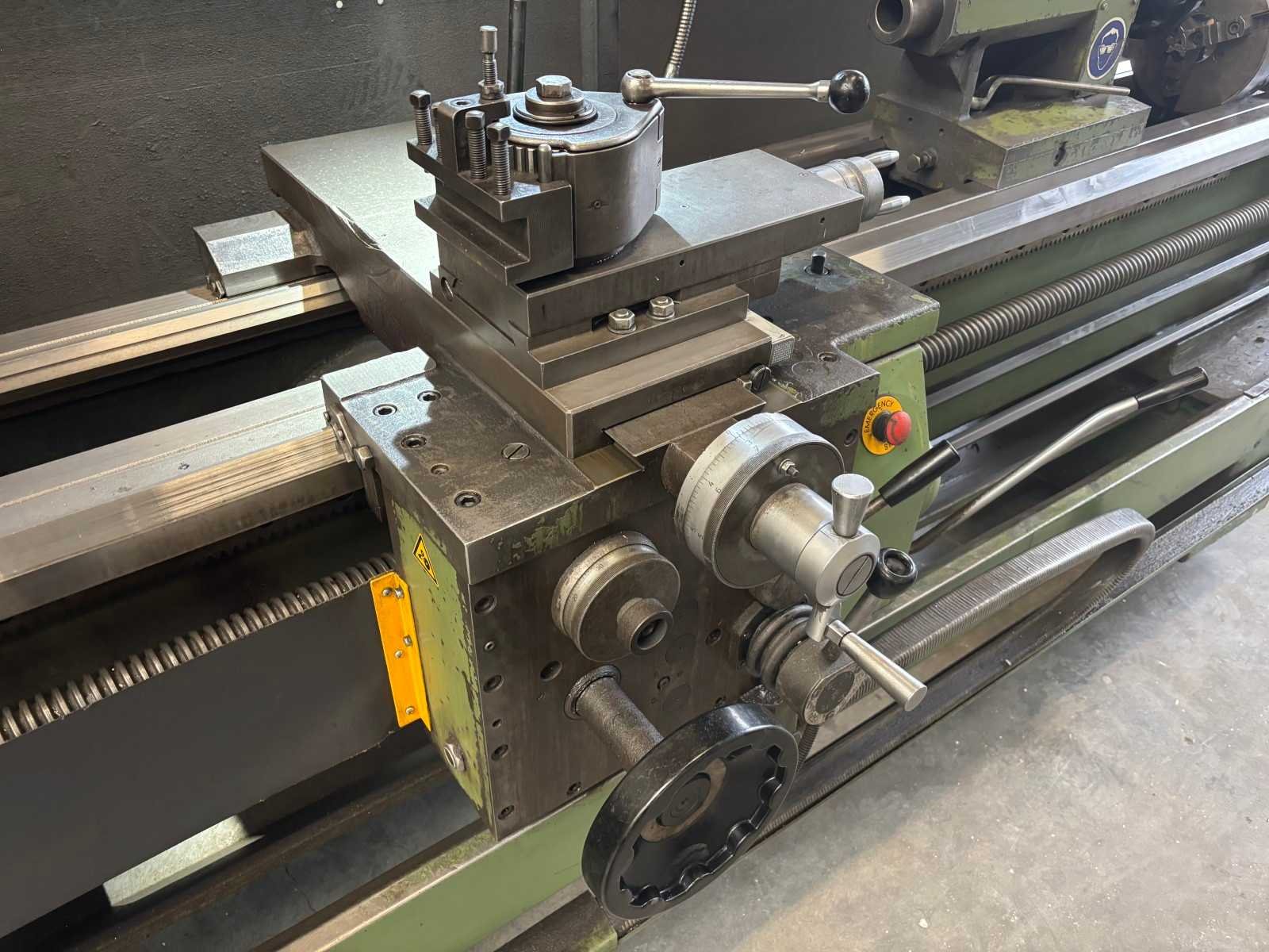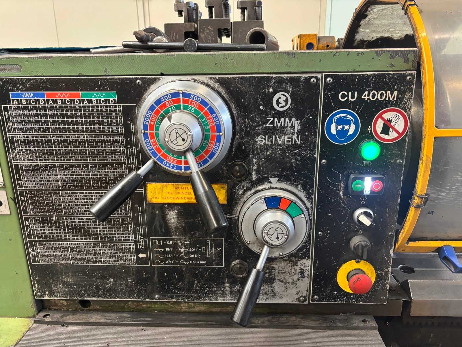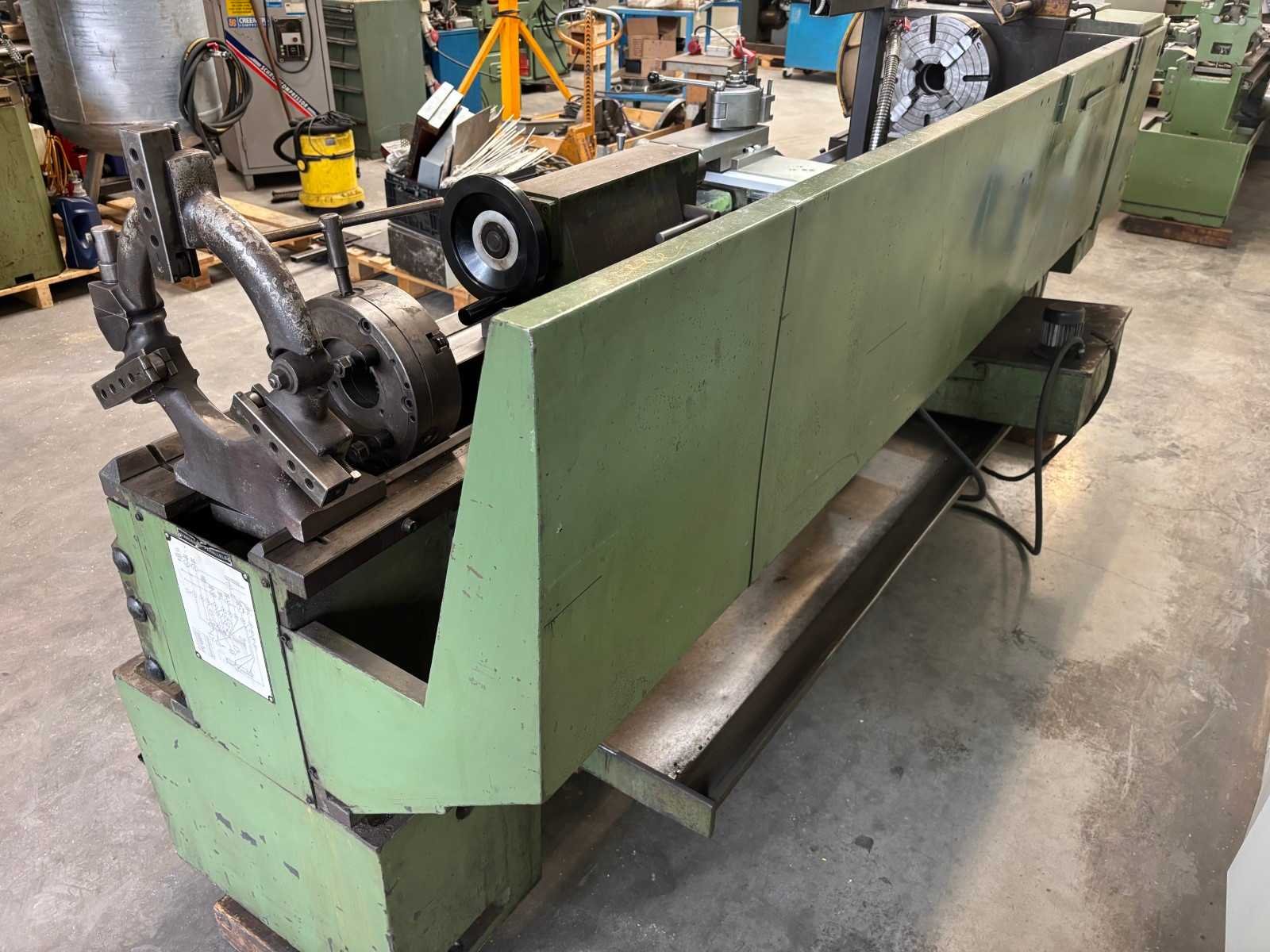 Machine getest op werking Compleet met snelwisselhouder met 4 houders, vaste bril, 3-klauwplaat 300 mm, 3-klauwplaat 250 mm Nee Merk: ZMM Type: CU400 Draailengte: 2000mm Draai: 440mm Holle spil Ø: 80mm Aantal snelheden: 24 Snelheid van n =: 20rpm Snelheid tot n =: 2000rpm Koelmiddelpomp: true Machinegewicht: 2800kg Afmeting l: 3450mm Afmeting b: 1250mm Afmeting h: 1400mm