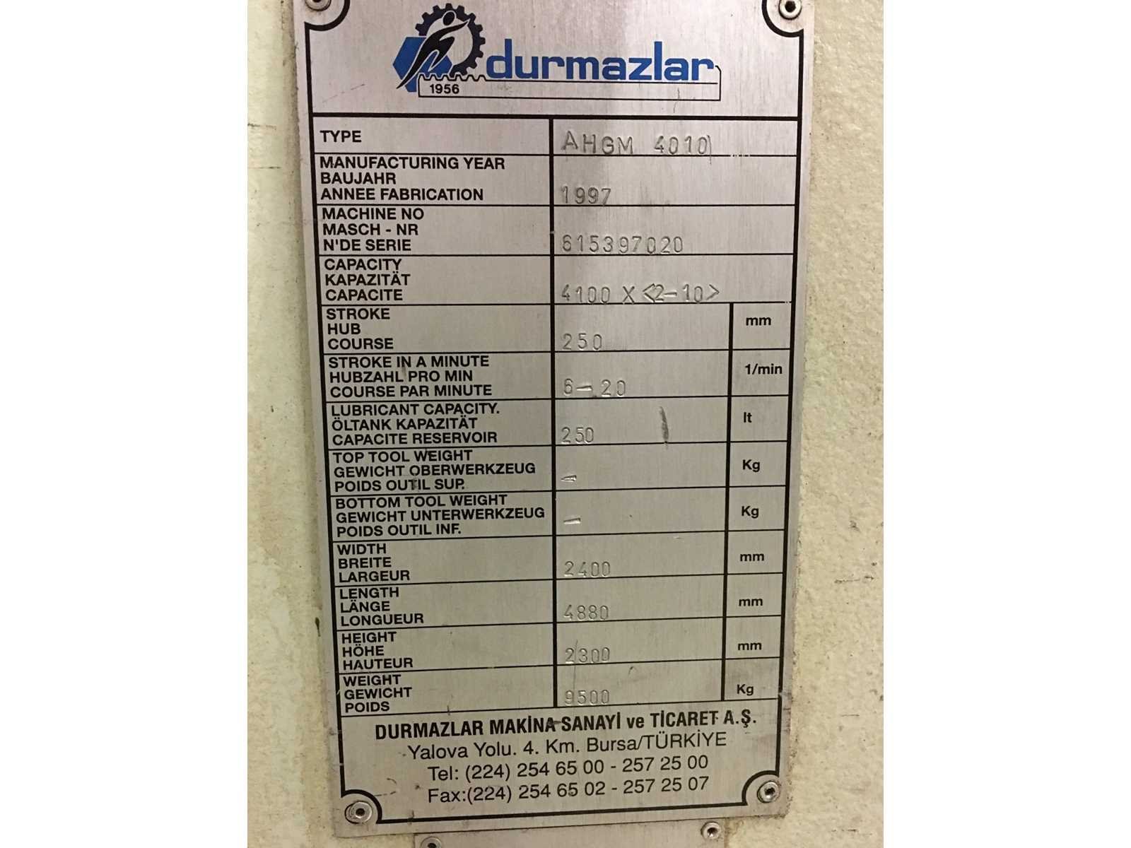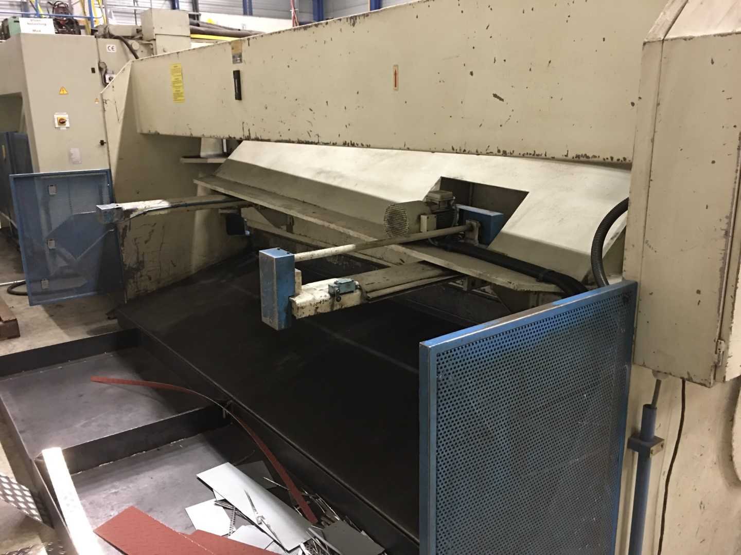 Getest op goede werking inclusief reserve bovenmes en afvalbak Programmeerbare achteraanslag Nee Merk: Durmazlar Type: AHGM 4010 Snijlengte: 4000mm Max. plaatdikte: 10mm Achteraanslag bereik: 1000mm Max. slagen p/min.: 20 Besturing, merk, type: Elgo Motorvermogen (kW): 15kW Aansluiting: 400V Machinegewicht: 9500kg Afmeting l: 4880mm Afmeting b: 2400mm Afmeting h: 2300mm