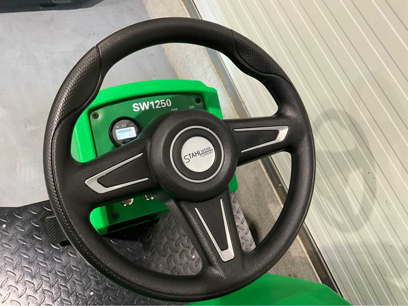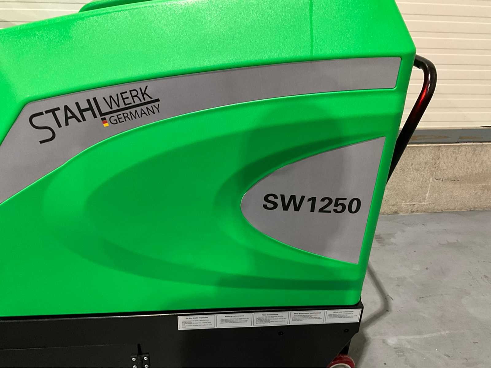 Ongebruikt **Technische gegevens:** - Rondom Led verlichting - Anti stof systeem - Spanning: 48V/67Ah - Veegbreedte: 1250 mm - Breedte hoofdborstel: 500 mm - Werkrendement: 6400 m²/u - Motor zijborstels: 90 W * 2 stuks - Aandrijfmotor: 800 W - Motor hoofdborstel: 700 W - Zuigmotor: 145 W - Watertank: 10 l - Capaciteit vuilcontainer: 80 l - Filteroppervlak: 5,2 m² - Oplaadtijd: 3,5-4 uur - Werktijd: >3,5 uur - Afmetingen: 1,5 * 1,25 * 1,25 m Nee Merk: Stahlwerk Type: SW1250 Bouwjaar: 2026 Werkbreedte: 1250mm Elektrisch: true Afgelezen urenstand: 1hr Accu lader: true Aansluiting: 48V Eigen gewicht: 420kg Totale afmeting L: 1500mm Totale afmeting Breedte: 1250mm Totale afmeting Hoogte: 1300mm
