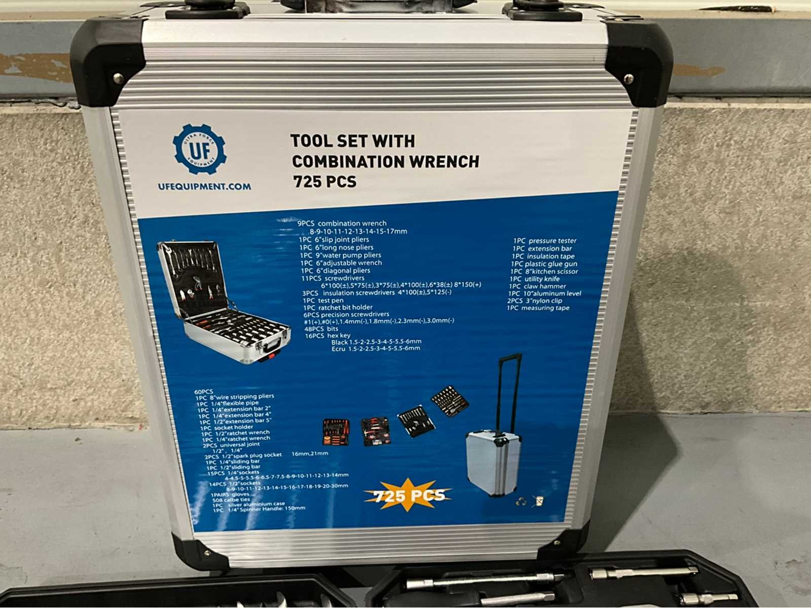 Ongebruikt in de originele verpakking Trolley incl. 725 stuks gereedschap en 2 sleutels No Merk: Ultra Force Equipment Bouwjaar: 2026 Aantal laden: 4 Met inhoud: true Totale afmeting L: 370mm Totale afmeting Breedte: 220mm Totale afmeting Hoogte: 530mm