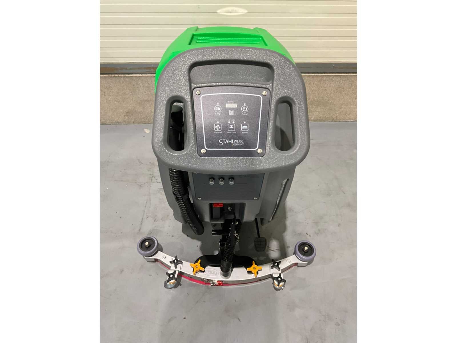 Aanvullende informatie vloerschrobmachine merk: Stahlwerk type: SW580 staat: ongebruikt in de originele verpakking functie: schrobben en drogen in 1 cyclus capaciteit: 2000 m² per uur voorzien van: instelbare borsteldruk borstel diameter: 510 mm borstel snelheid: 175 toeren per minuut vuilwatertank: 60 liter vuil watertank proper watertank: 55liter proper watertank aantal motoren: 2 motoren vermogen: 2 x 500 watt batterij: 24 V / 100 Ah batterij inclusief: acculader aanwezig handleiding: handleiding aanwezig gewicht: 180 kg Nee Merk: Stahlwerk Type: SW580 Bouwjaar: 2026 Werkbreedte: 850mm Elektrisch: true Accu lader: true Aansluiting: 220V Eigen gewicht: 160kg Totale afmeting L: 1400mm Totale afmeting Breedte: 830mm Totale afmeting Hoogte: 1050mm