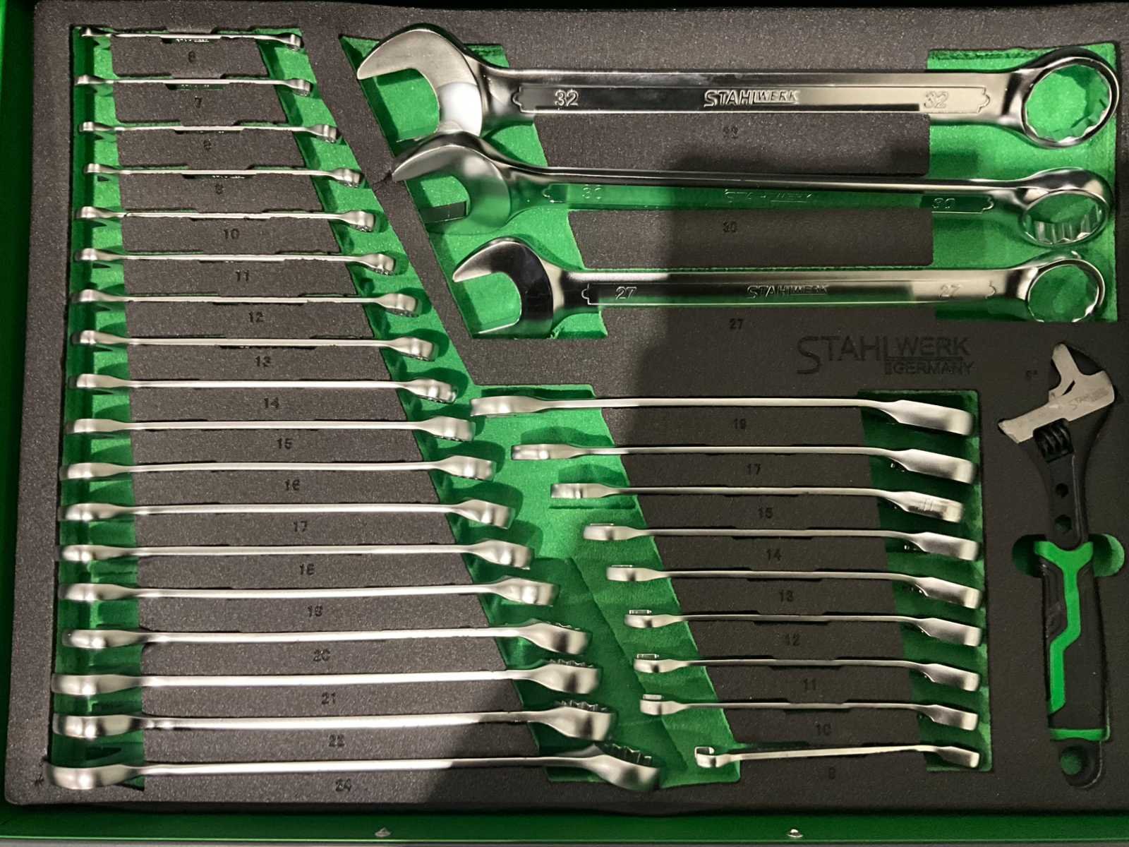 Ongebruikt , 3 stopcontacten , 2 usb poorten 13 stuks 1/4” doppen: 4-4,5-5-5,5-6-7-8-9-10-11-12-13-14mm 10 stuks 3/8” doppen: 13-14-15-16-17-18-19-20-21-22mm 14 stuks 1/2” doppen: 12-13-14-15-17-18-19-21-22-23-24-27-30-32mm 12 st. 1/2” dopsleutel: 12-13-14-15-16-17-18-19-21-22-24mm 3 stuks 1/4“ 3/8” 1/2” duwstang 3 stuks 1/4“ 3/8” 1/2” kruiskoppeling 2 st. 1/4“ maat 2” & 4” verlengstang 2 st. 3/8“ maat 3”&6” verlengstang 2 st. 1/2“ maat 5”&10” verlengstang 3 stuks 1/4“ 3/8” 1/2” ratelhandgreep 72T 1 st. 1/4“ snijhendel 1/2” Dr. koppeling 10 st. Bits PH3-4, PZ3-4, SL8, T40-45-50, H7-8; 12 st. 1/2” inbusbits maat: H14-17-19, M16, M9, MP9, M16, T80, M14, T40-45-50. 45 stuks 1/4” dopsleutels: SL4-SL5,5-... (en zo verder volgens uw lijst) 12 stuks 1/2” Pneumatische doppen: 10-11-12... (enzovoort) 9 stuks Lange inbussleutels: 1,5-2-2,5-... (enzovoort) 14 stuks schroevendraaiers: SL8*175-SL8*150-... (enzovoort) 7 stuks schroevendraaiers: SL6*38-SL5*100-... (enzovoort) 9 stuks. Flachringschlüssel:8-9-10-11-... (enzovoort) 21 stuks Kombischlüssel:6-7-8-9-10-11-... (enzovoort) 1 st. 8” verstelbare moersleutel 9 stuks schroevendraaiers: H2*100-5*150-... (enzovoort) 8 stuks T-Stecknuss:6-7-8-9-10-11-12-13mm 1 st. 8” combinatietang 1 stuk 8” naaldneuzen 1 x 8” zijkniptang 1 x 10” waterpomptang 1 x 10” vergrendeltang 1 stuk 7” binnenringtang recht 1 stuk 7” binnenringtang gebogen 1 x 7” buitenringtang recht 1 st. 7” buitenringtang gebogen 1 st. Meetlint 5 Nee Merk: Stahlwerk Type: SW 7 Bouwjaar: 2026 Aantal laden: 7 Met inhoud: true