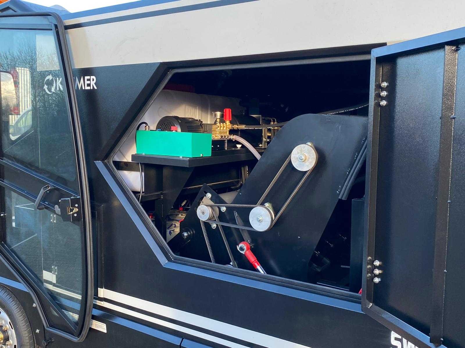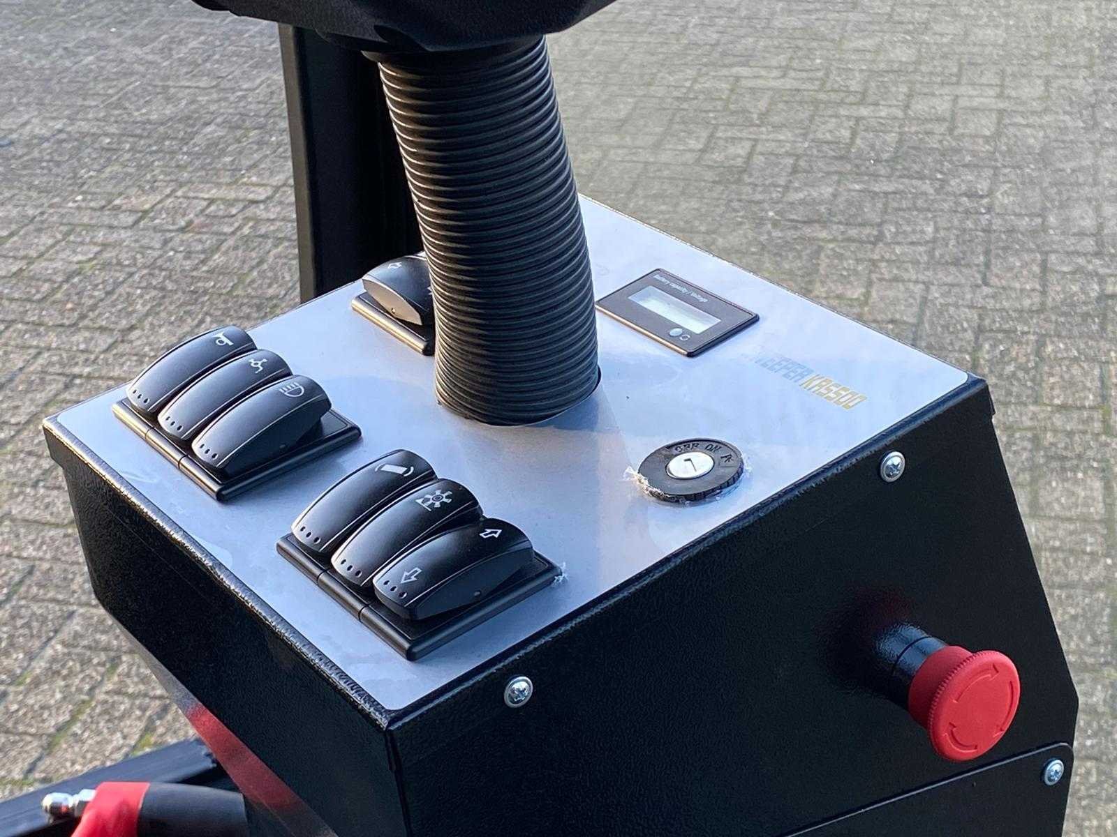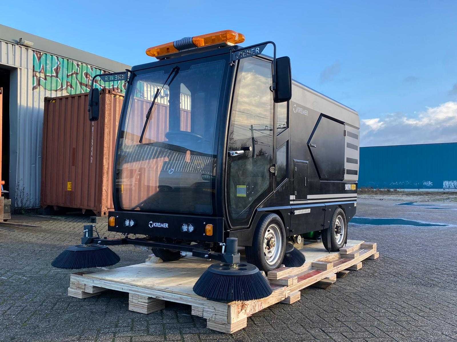 Ongebruikt Veegbreedte: 2.200 mm Inhoud vuilcontainer: 240 liter Laadtijd: 6,5 uur Werkduur: 5 uur Totaalgewicht: 1.580 kg Aandrijving: 48 V / 300 Ah accu Hoofdborstelmotor: 800 W × 2 Zijborstelmotor: 90 W × 4 Zuigmotor: 50 W × 2 Aandrijfmotor: 500 W Stoftrilmotor: 50 W × 2 Maximale hellingshoek: 25 % Rijsnelheid: 0 – 25 km/u Antislipregeling: Ja Beizichting op afspraak Nee Merk: Kremer Type: KRS500 Bouwjaar: 2026 Werkbreedte: 2200mm Elektrisch: true Afgelezen urenstand: 1hr Accu lader: true Aansluiting: 48V Eigen gewicht: 780kg Totale afmeting L: 3950mm Totale afmeting Breedte: 2050mm Totale afmeting Hoogte: 2000mm
