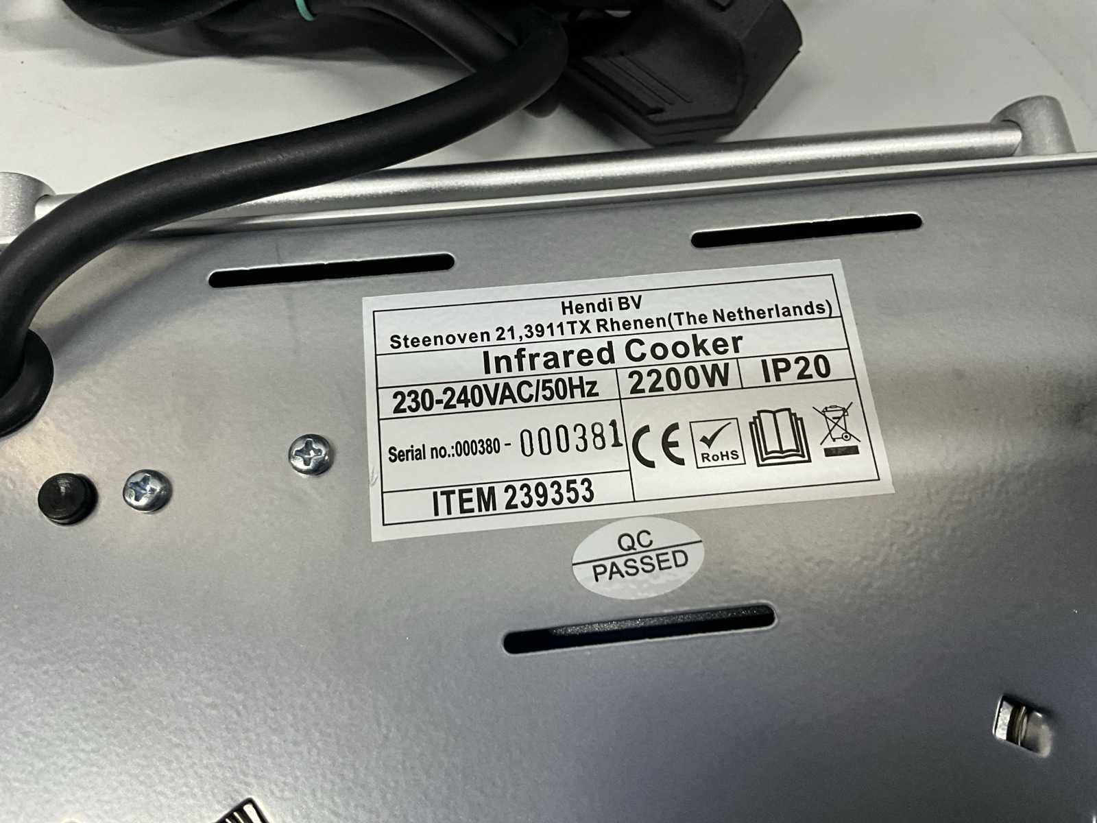 Ongebruikt; 2200 watt. Nee Merk: Hendi Model: 239353 Totale afmeting Breedte: 310mm Totale afmeting L: 420mm Totale afmeting Hoogte: 80mm