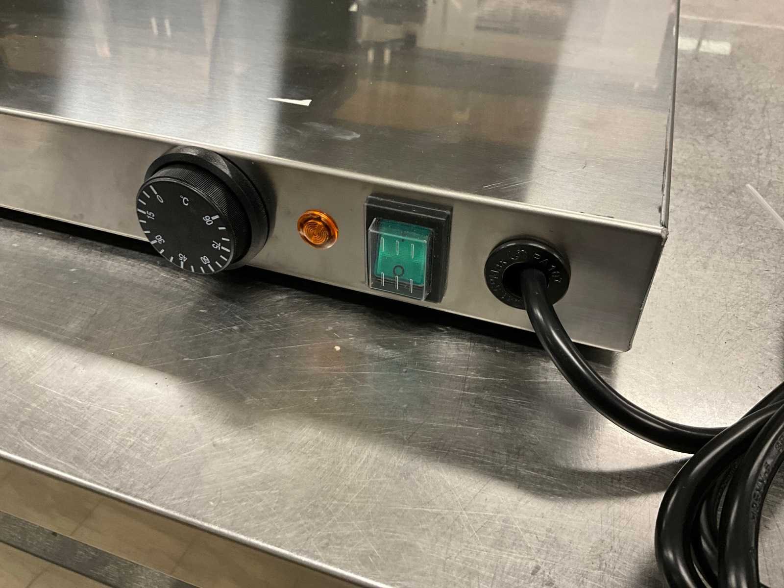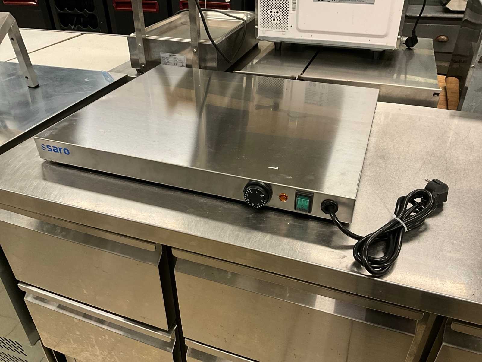 Ongebruikt; kleine deuk in bovenzijde; 800 watt. No Merk: Saro Totale afmeting L: 66cm Totale afmeting Breedte: 53cm Totale afmeting Hoogte: 5cm Rvs: true Regelbare thermostaat: true Aansluiting: 230V