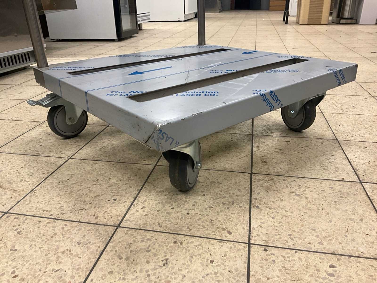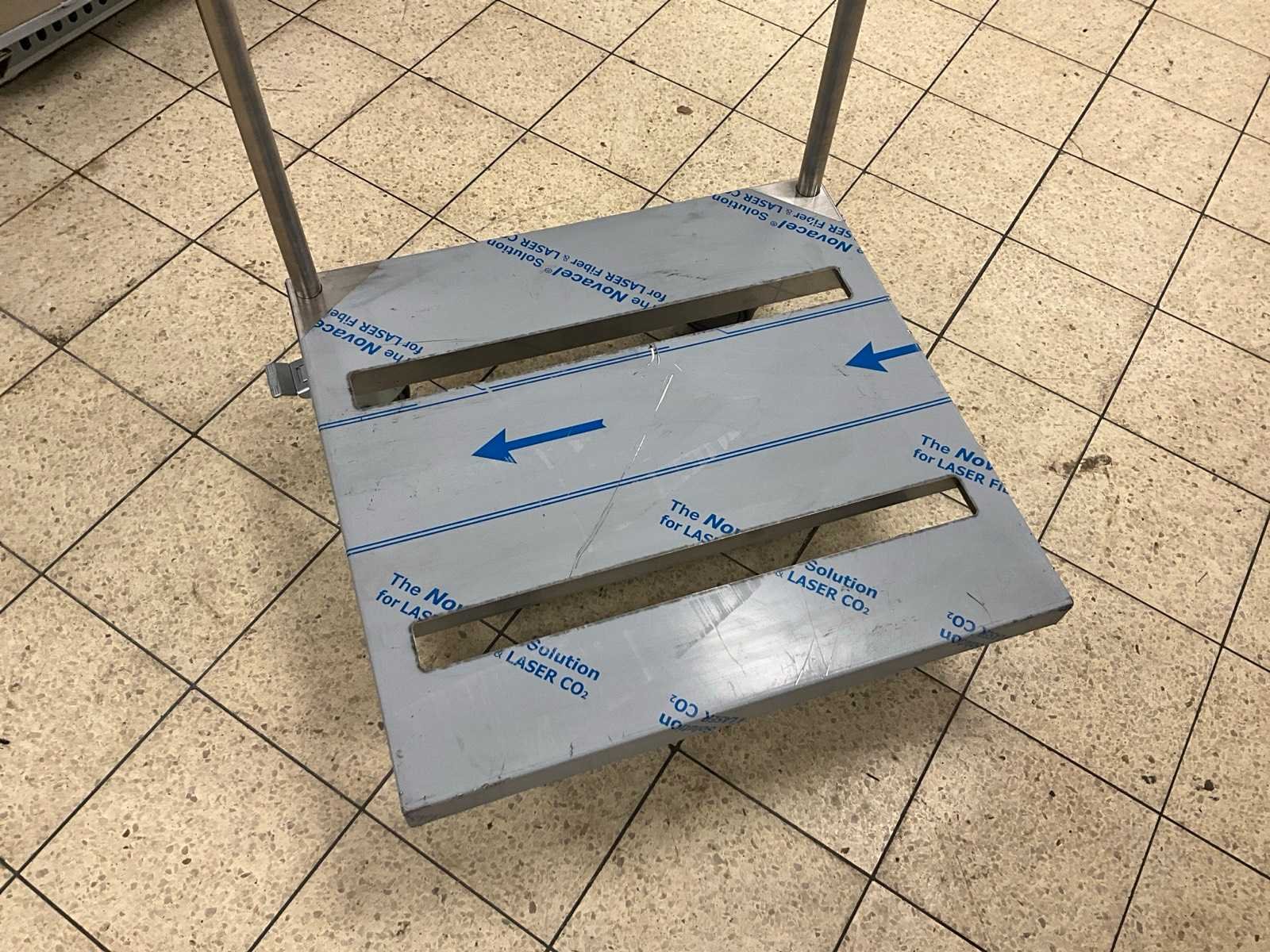 Ongebruikt; verrijdbaar; plateauhoogte 18 cm. Nee Rvs: true Lengte: 57cm Breedte: 53cm Hoogte: 90cm