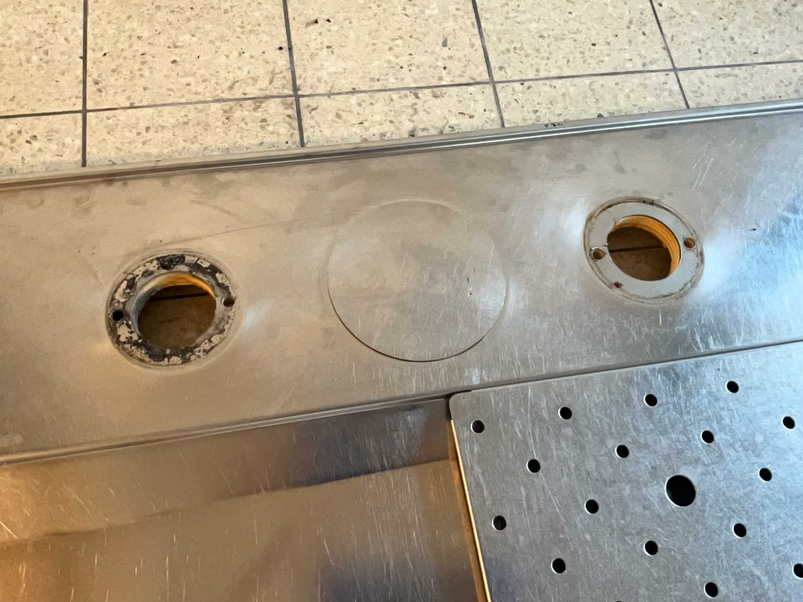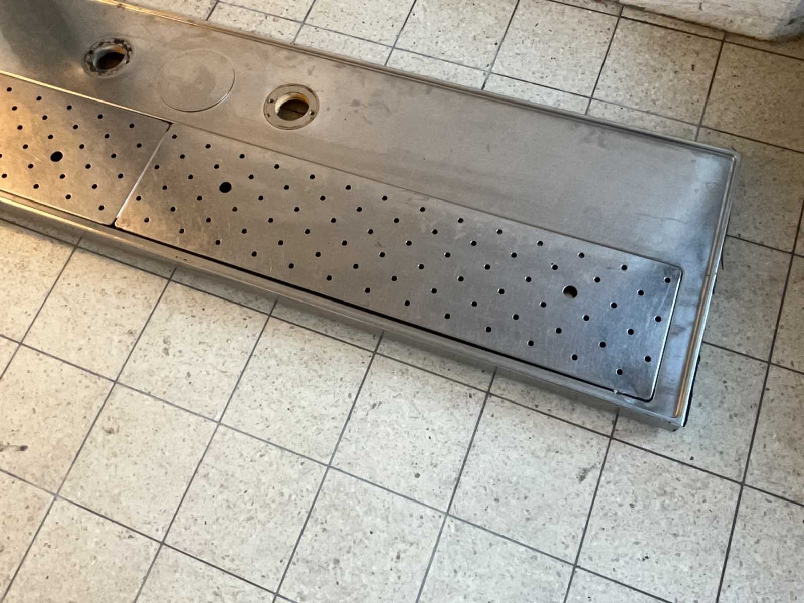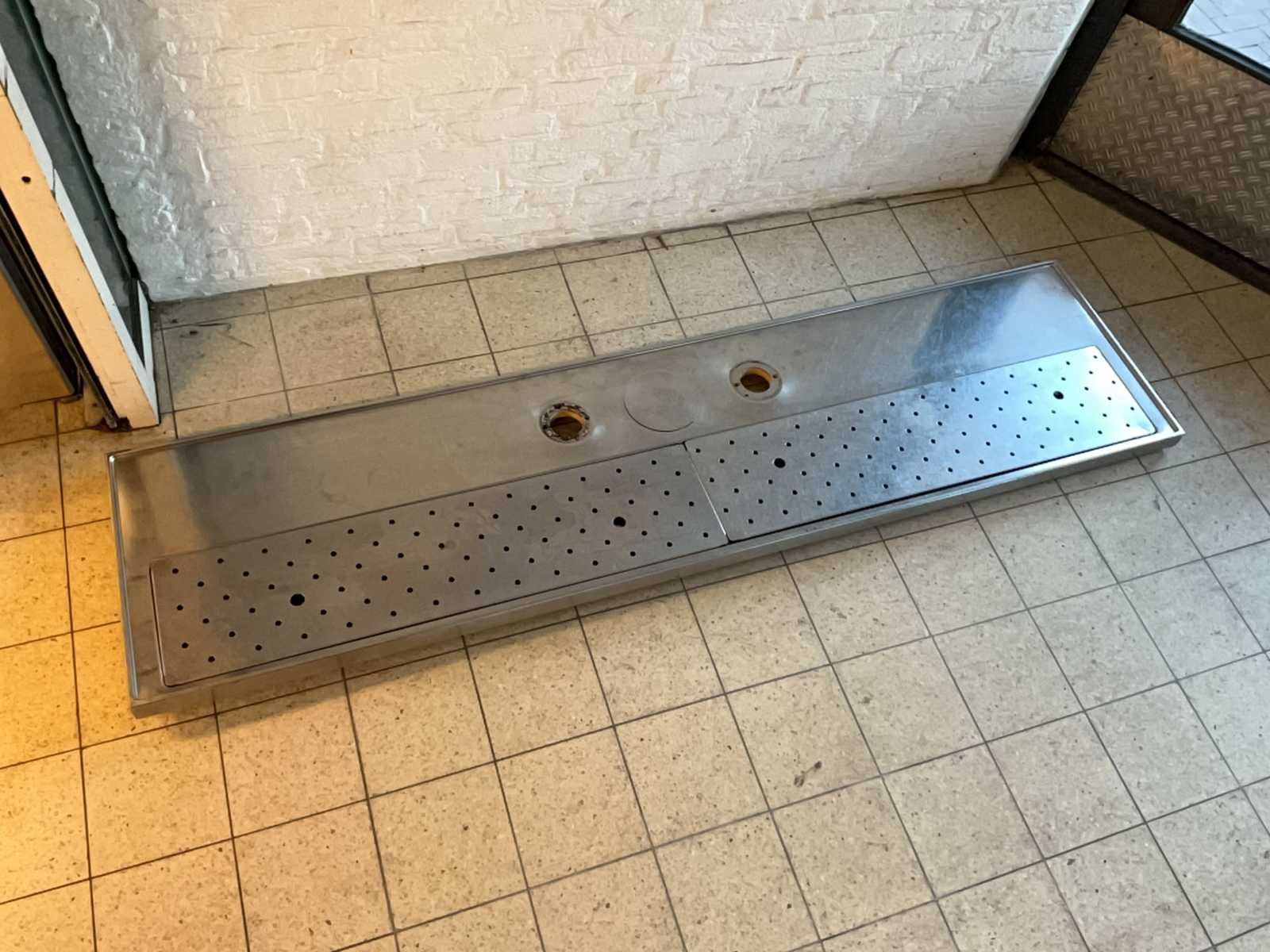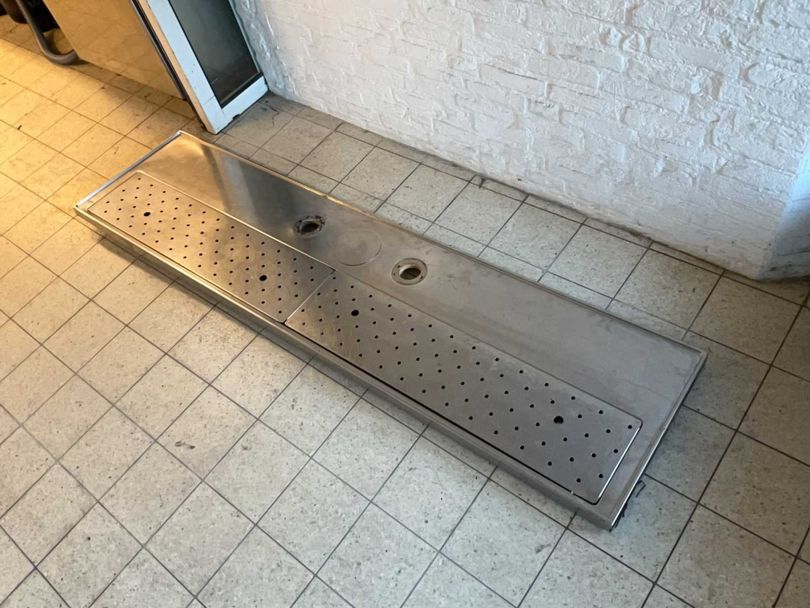 Voorzien van opening voor 2 tapzuilen. No Lengte: 200cm Breedte: 50cm Hoogte: 4cm Materiaal: rvs
