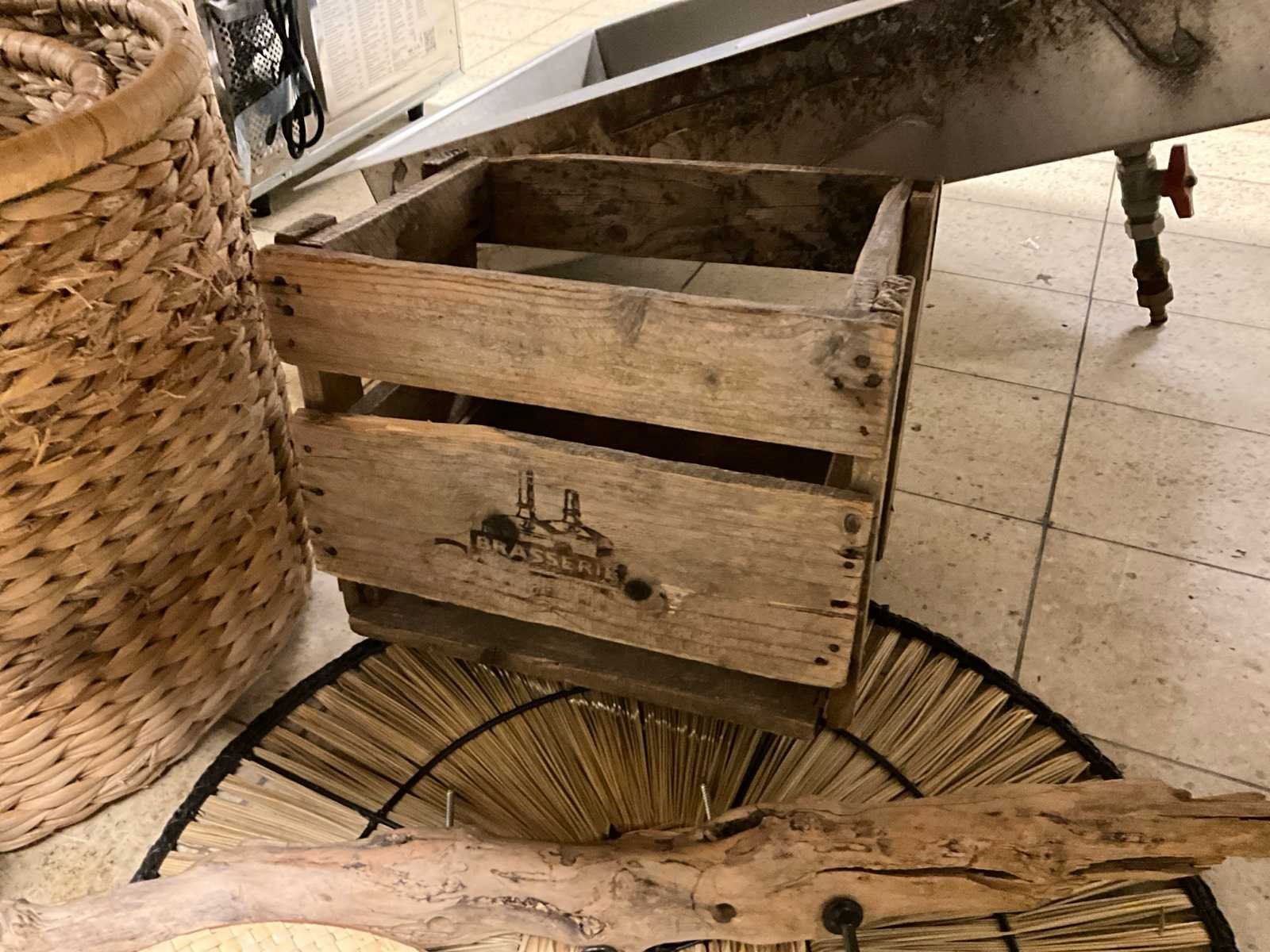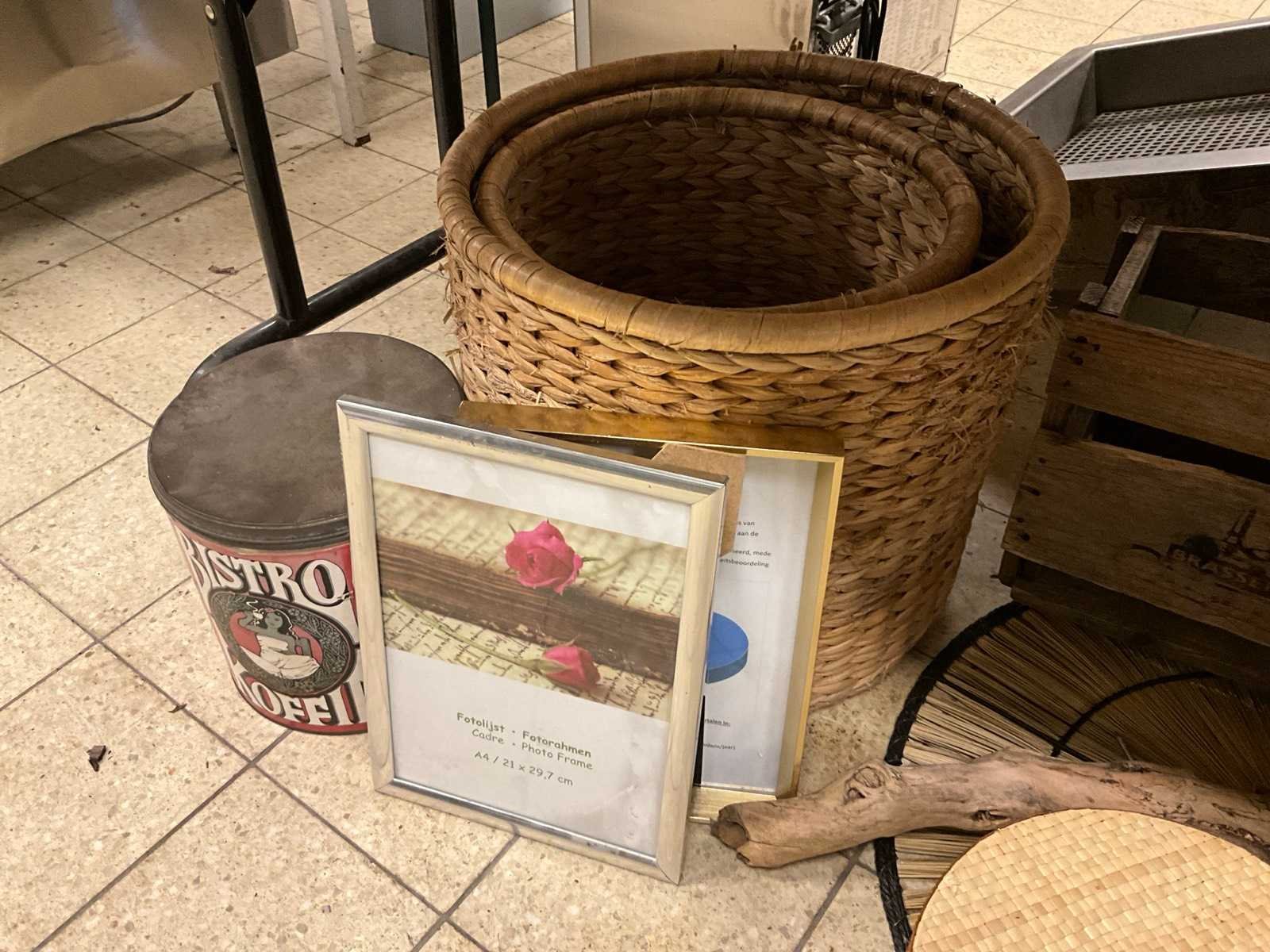 Manden, krukje, prenten en blik. Nee Metaal: true Hout: true