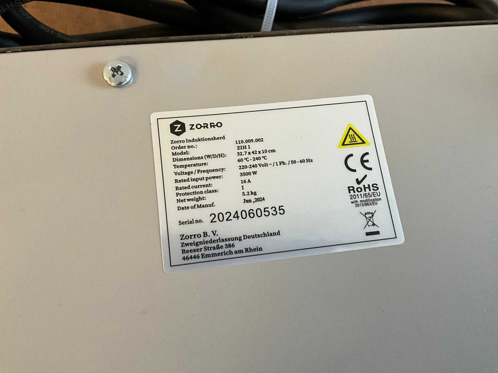 Ongebruikt; 3500 watt.; bouwjaar 2025. Nee Merk: Zorro Model: ZIH1 Gewicht: 5kg Materiaal: rvs Totale afmeting Breedte: 330mm Totale afmeting L: 420mm Totale afmeting Hoogte: 100mm