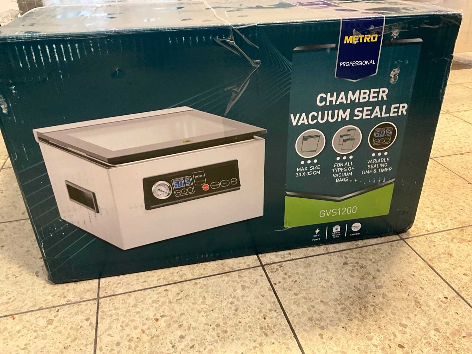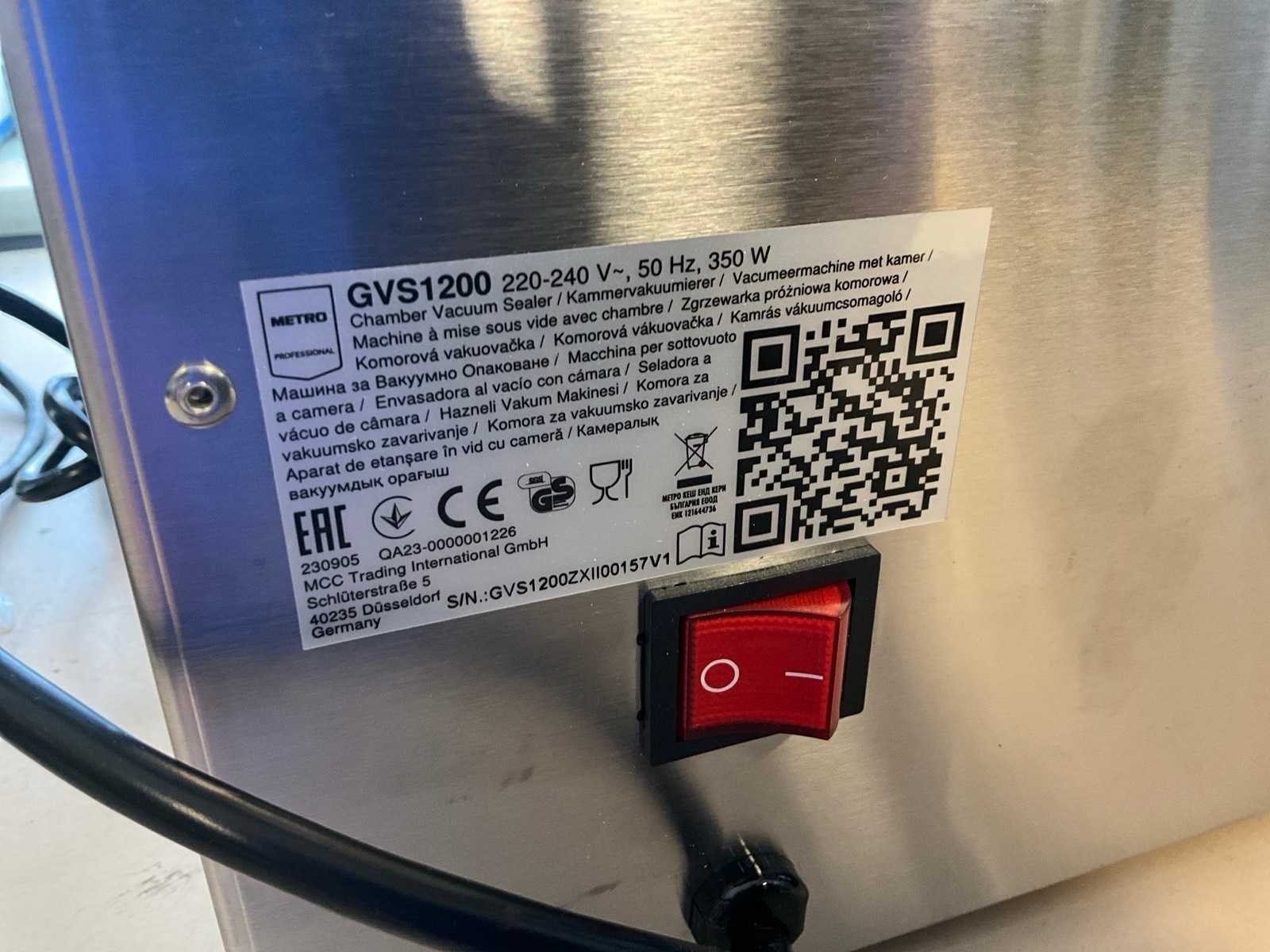 Ongebruikt ; 350 watt. Nee Merk: Metro Type: GVS 1200 Aantal kamers: 1 Aansluiting: 230V Totale afmeting L: 380mm Totale afmeting Breedte: 450mm Totale afmeting Hoogte: 250mm