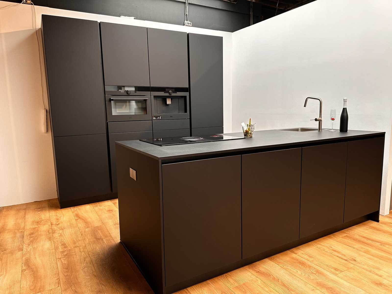 “Elica” NT ONE FB, 4-zone Inductiekookplaat met afzuigsysteem 83cm; Let op! zonder kraan, accessoires en krukken; Wordt geleverd ongebruikt in doos. Nee Merk: Nobilia Model: EasyTouch Zwart Type keukenopstelling: Eiland opstelling Lengte: 245cm Breedte: 60cm Hoogte: 228cm Gootsteen: Reginox RVS Colorado Werkblad hoogte: 93cm Aanrechtblad: HPL Zwart Koffiezetapparaat: AEG CK7100B Inbouw Espresso black 45cm Koelkast: Laurus LKG122F koelkast met vriesvak, 122cm Softclose: true Oven: AEG CM7600B Black 45cm, Multi-oven met magnetron Vaatwasser: Laurus LSV604 inbouw 60cm Lengte kookeiland: 244cm Breedte kookeiland: 100cm Hoogte kookeiland: 93cm Plintkleur: zwart mat Hoofdkleur: Laklaminaat, grafietzwart ultramat Style: Modern Kleur: zwart mat