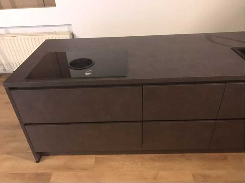 Bora GP4U 4-zone inductie air kookplaat; Let op! vaatwasser front is “niet gesplist” 1 hele deur; “Siemens” HB634GBS1 inbouw bakoven staat opgesteld in de showroom en apparatuur is afwijkend ten opzichte van de foto kan HB510ABR1; Let op! zonder kraan, en accessoires; Wordt ongebruikt in doos doos geleverd. Nee Merk: Nobilia Model: Riva decor beton terra grijs Type keukenopstelling: Eiland Lengte: 122,5cm Breedte: 60cm Hoogte: 217cm Gootsteen: Reginox RVS Colorado Werkblad hoogte: 91cm Aanrechtblad: HPL blad Decor Beton Terra grijs (149) Koelkast: Laurus LKG122F inbouw koelkast 122cm met vriesvak Softclose: true Oven: Siemens HB510ABR1, 60cm, zwart bakoven met hetelucht Vaatwasser: Laurus LSV604 volledig geïntegreerde vaatwasser Lengte kookeiland: 265cm Breedte kookeiland: 96cm Hoogte kookeiland: 91cm Plintkleur: decor beton terra grijs Hoofdkleur: decor beton terra grijs Style: modern Kleur: decor beton terra grijs