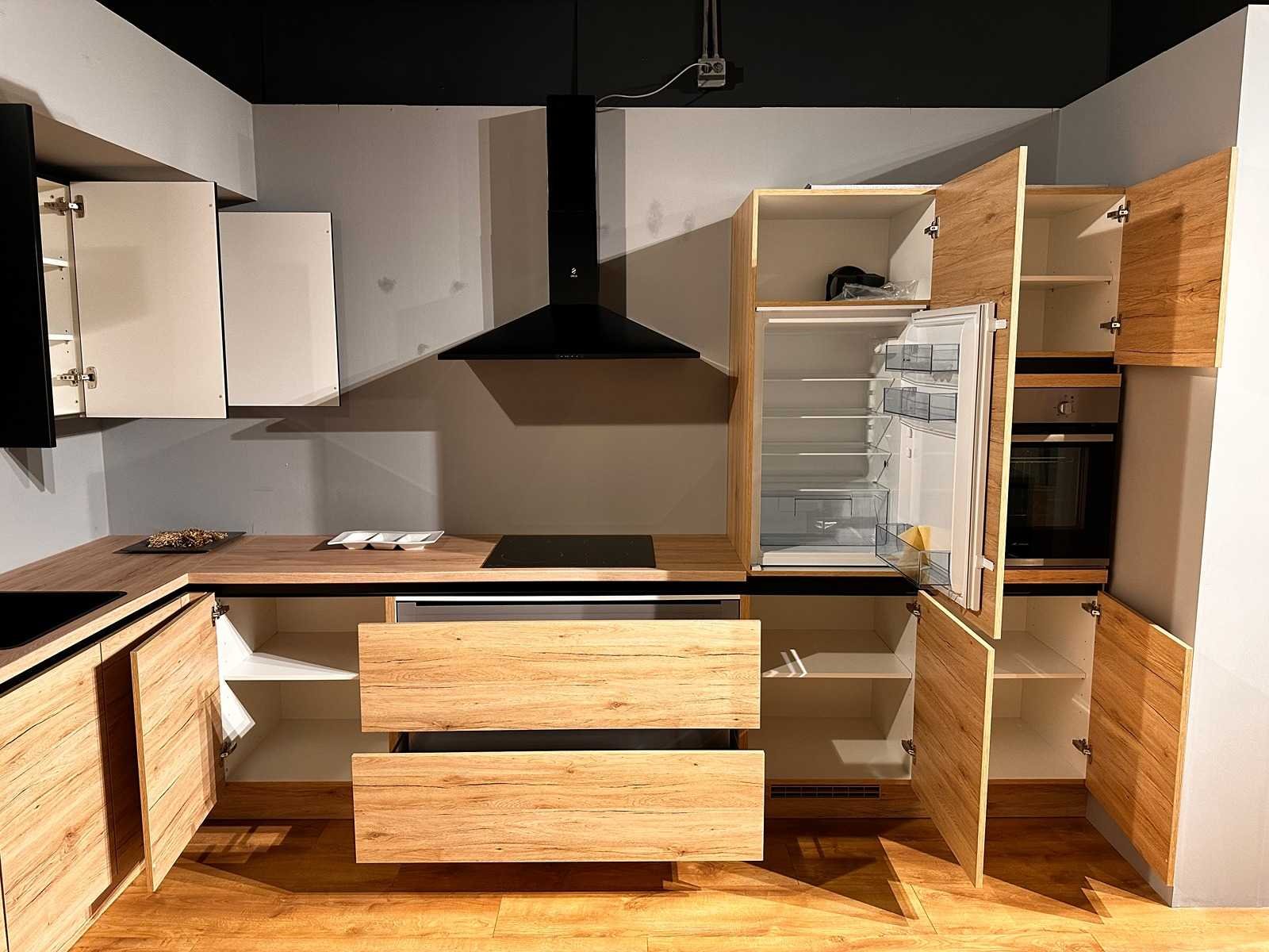 Laurus LCA60ZKB 4-zone keramisch kookplaat 60cm; Let op!; zonder kraan, verlichting en accessoires; Let op! Wordt ongebruikt in doos geleverd. Nee Merk: Nobilia Model: Riva Decor eiken San Remo Type keukenopstelling: Hoek Lengte: 217-365cm Breedte: 60cm Hoogte: 217cm Gootsteen: Reginox Colorado RVS spoelbak Werkblad hoogte: 91cm Aanrechtblad: HPL Decor eiken San Remo Koelkast: Laurus LKG122F 122cm inbouw koeler met vriesvak, sleepdeur systeem Softclose: true Oven: Laurus LEB5 inbouw bakoven 60cm Afzuigkap: Elica MissyBL90-D afzuigkap 90cm zwart; Vaatwasser: Laurus LSV604 inbouw vaatwasser 60cm, volledig geintegreerd Plintkleur: Decor eiken San Remo Hoofdkleur: Decor eiken San Remo Style: modern greeploos Kleur: Decor eiken San Remo