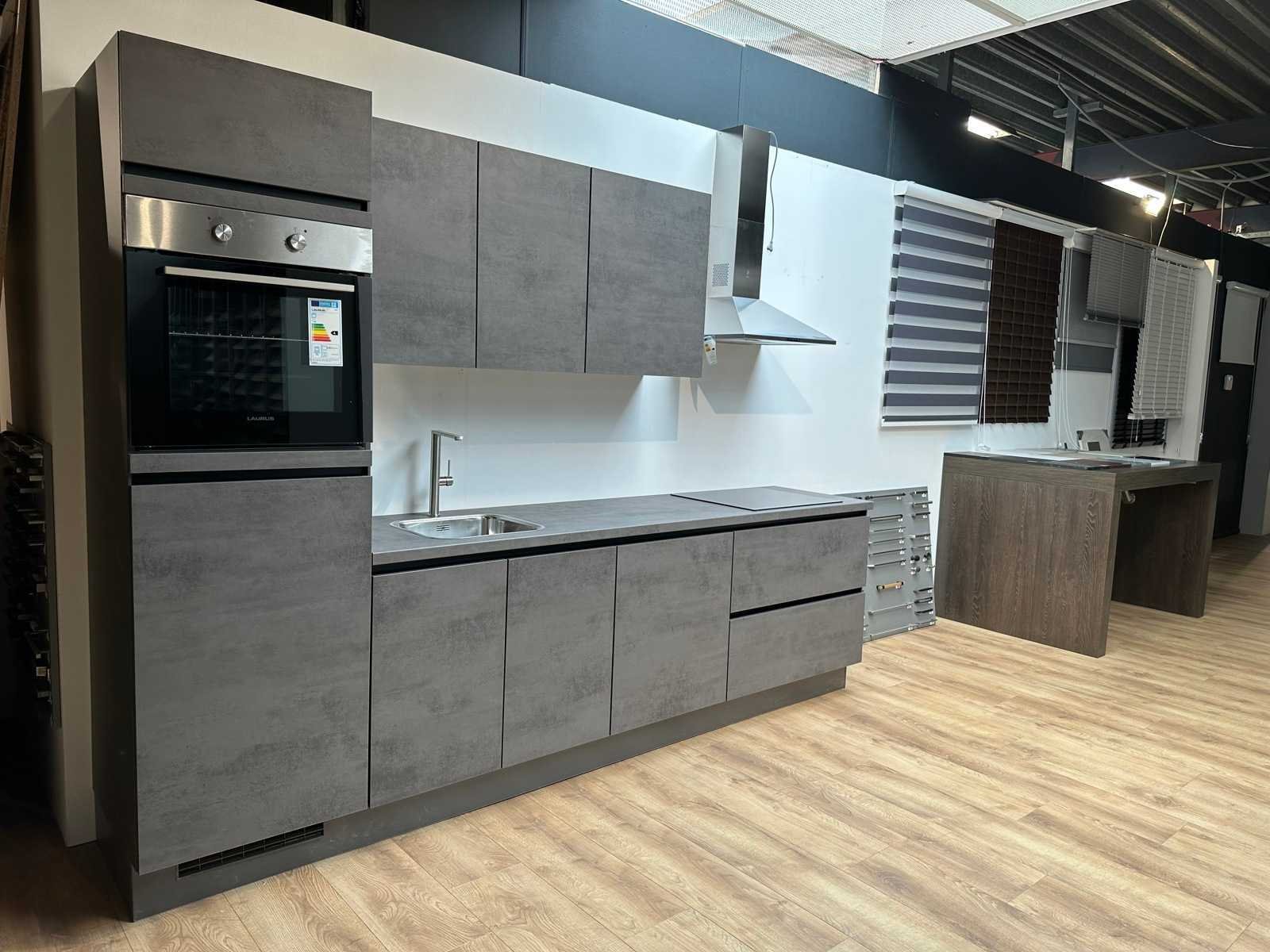 “Laurus” LCA60 keramische kookplaat 60cm zwart glas; “zonder kraan en accessoires. Let op! wordt geleverd ongebruikt in doos; Nee Merk: Nobilia Model: Riva decor beton schiefergrijs mat Type keukenopstelling: recht Lengte: 300cm Breedte: 50cm Hoogte: 217cm Gootsteen: Reginox colorado rvs spoelbak Werkblad hoogte: 91cm Aanrechtblad: HPL kunststof decor beton schiefergrijs Koelkast: Laurus koeler 88cm, sleepdeur systeem Softclose: true Oven: Laurus LEB inbouwbakoven 60cm Afzuigkap: Elica Missydt90 rvs kleur 90cm Vaatwasser: Laurus LSV604 volledig geïntegreerd vaatwasser Plintkleur: beton schiefergrijs mat Hoofdkleur: beton schiefergrijs mat Style: modern Kleur: beton schiefergrijs mat