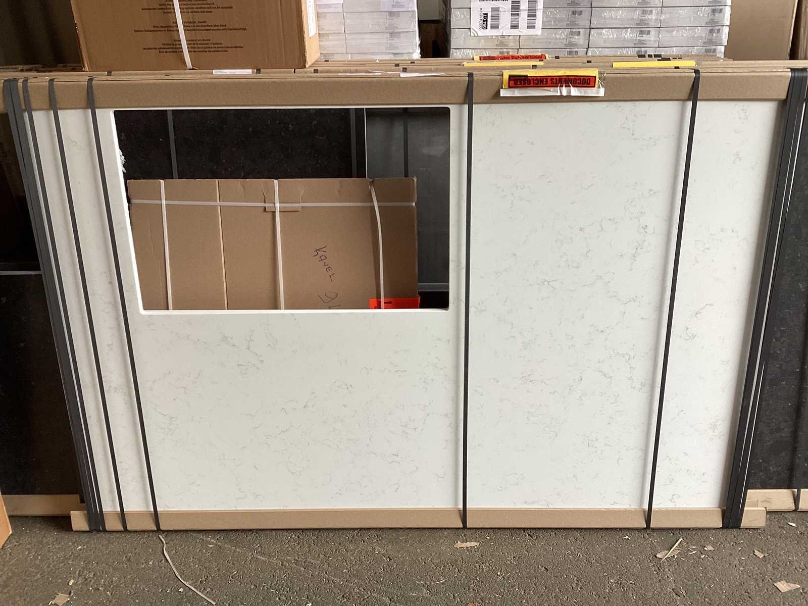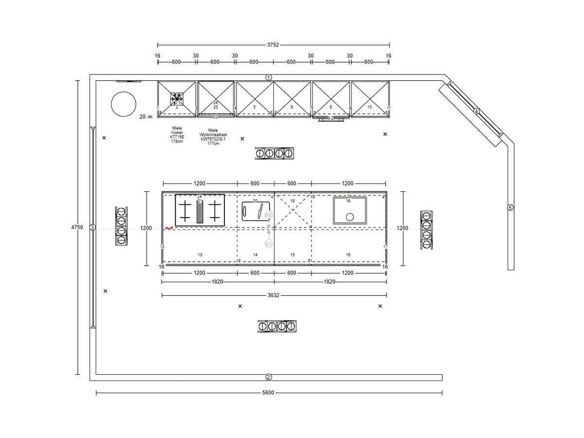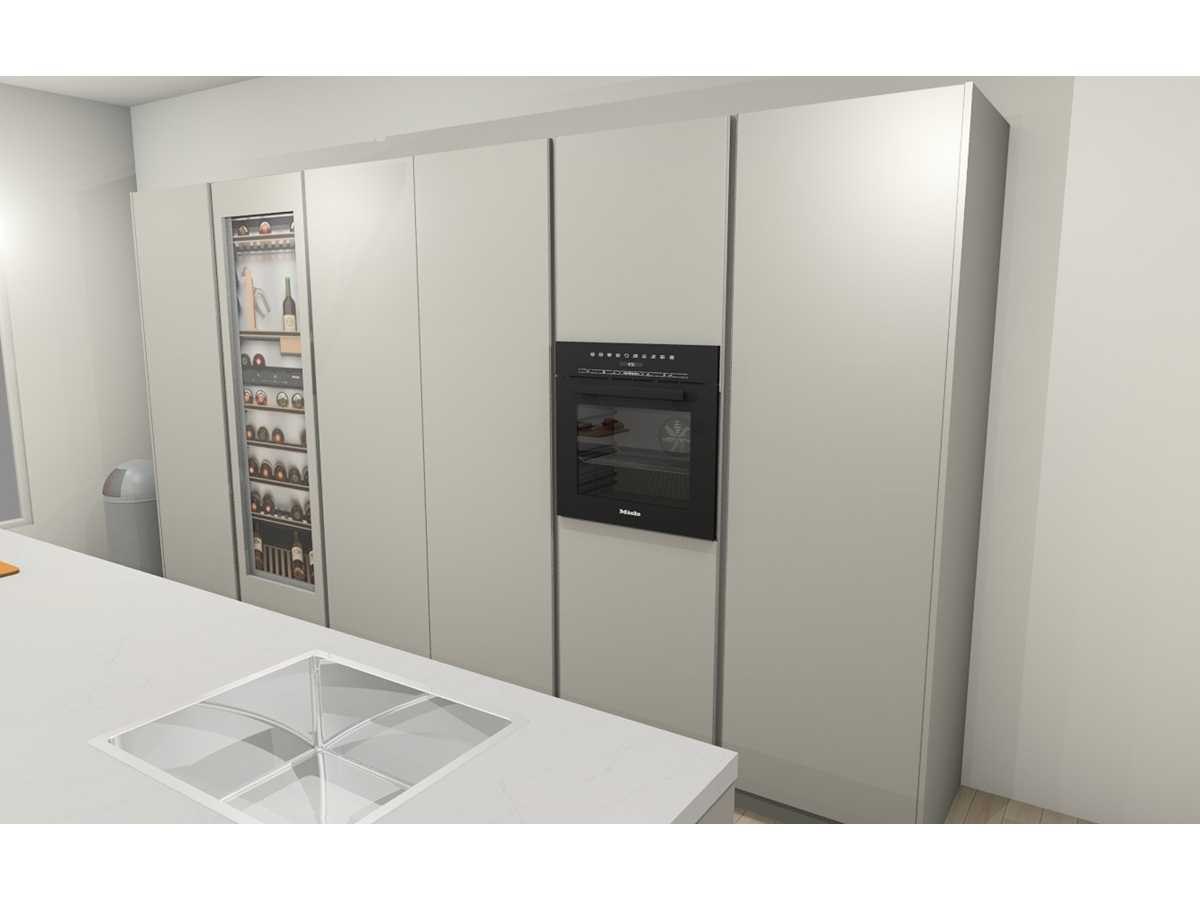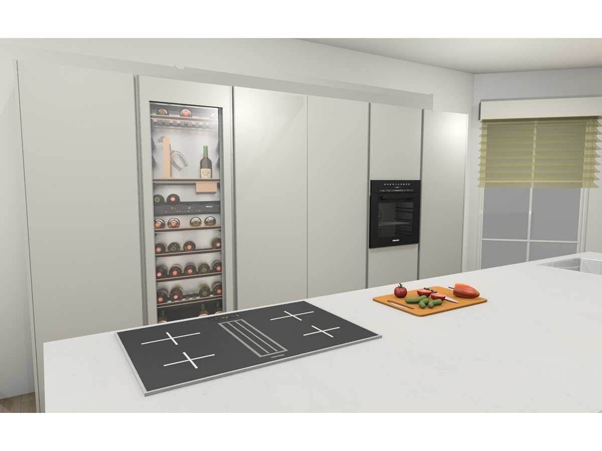 Miele KWT 6722 iS-1 EU1, wijnklimaatkast, 177cm. 259liter, Miele KMDA 7473 FR-U Silence RVS BNE, werkblad afzuiging, inductie, 4 kookzones, 80cm. Opbouwmodel Let op! Werkblad is van Kemie Venturo Gold glans, cosmostone, 4cm. Heeft naad in het midden. Let op! Keuken staat niet opgesteld, enkel 3D tekening en wordt geleverd ongebruikt in doos. Let op! Aanrecht blad is zwaar, tijdens afhaal dag zorgvuldig meenemen en neem extra man kracht mee! Nee Merk: Duitse Keuken Model: Kasjmier mat lak Type keukenopstelling: Eiland met hoge kasten Lengte: 375cm Breedte: 60cm Hoogte: 214cm Gootsteen: Reginox Houston RVS vlak inbouw Aanrechtblad: Kemie Venturo Gold glans, cosmostone, 4cm Koelkast: Miele K7715E, koeler 178cm, Softclose: true Oven: DGC 7250 OBSW BN, Stoomoven, 60cm Vaatwasser: Miele G 5651 SCVi Active, volledig geintegreerd Lengte kookeiland: 364cm Breedte kookeiland: 120cm Hoogte kookeiland: 93,5cm Plintkleur: Kasjmier mat Hoofdkleur: Kasjmier mat lak Style: Modern greeploos Kleur: Kasjmier mat lak