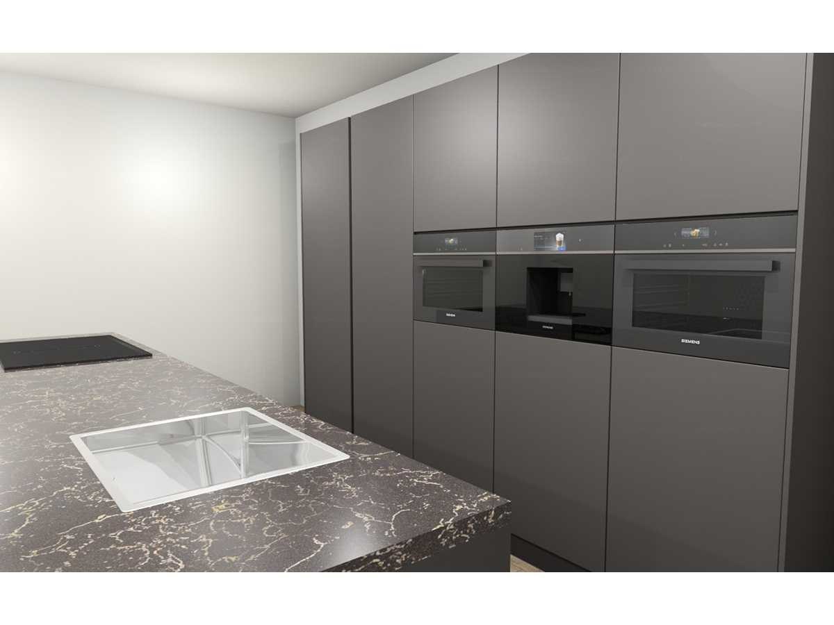 Siemens ED877BS16E Inductie kookplaat met afzuiging, 80cm, opbouw, 4 kookzones. Let op! Werkblad is van Composiet, Amadeo gepolijst / glans 4cm dik. Let op! Keuken staat niet opgesteld, enkel 3D tekening en wordt geleverd ongebruikt in doos. Let op! Aanrecht blad is zwaar, tijdens afhaal dag zorgvuldig meenemen en neem extra man kracht mee! Nee Merk: Häcker Concept130 Model: Topsoft mat lak grafiet Type keukenopstelling: eiland Lengte: 306cm Breedte: 60cm Hoogte: 220cm Gootsteen: Reginox Houston 50 rvs, vlakinbouw Werkblad hoogte: 92cm Aanrechtblad: Dekker Amadeo gepolijst composiet Koffiezetapparaat: Siemens CT918L1B0, 45cm Magnetron: Siemens CE932GXB1, nis 45cm. Koelkast: Siemens KI81RSDD0, 178cm koeler, deur op deur Softclose: true Oven: Siemens CB974GKB1, nis 45cm, met Pyrolyse systeem Vaatwasser: Siemens SN63H804UE, Volledig integreerbare vaatwasmachine iQ300 met 6 programma's, 4 speciale functies waaronder Home Connect via WiFi, 60cm Lengte kookeiland: 304cm Breedte kookeiland: 120cm Hoogte kookeiland: 94cm Plintkleur: mat grafiet Hoofdkleur: mat lak grafiet Style: Modern greeoloos Kleur: mat lak grafiet