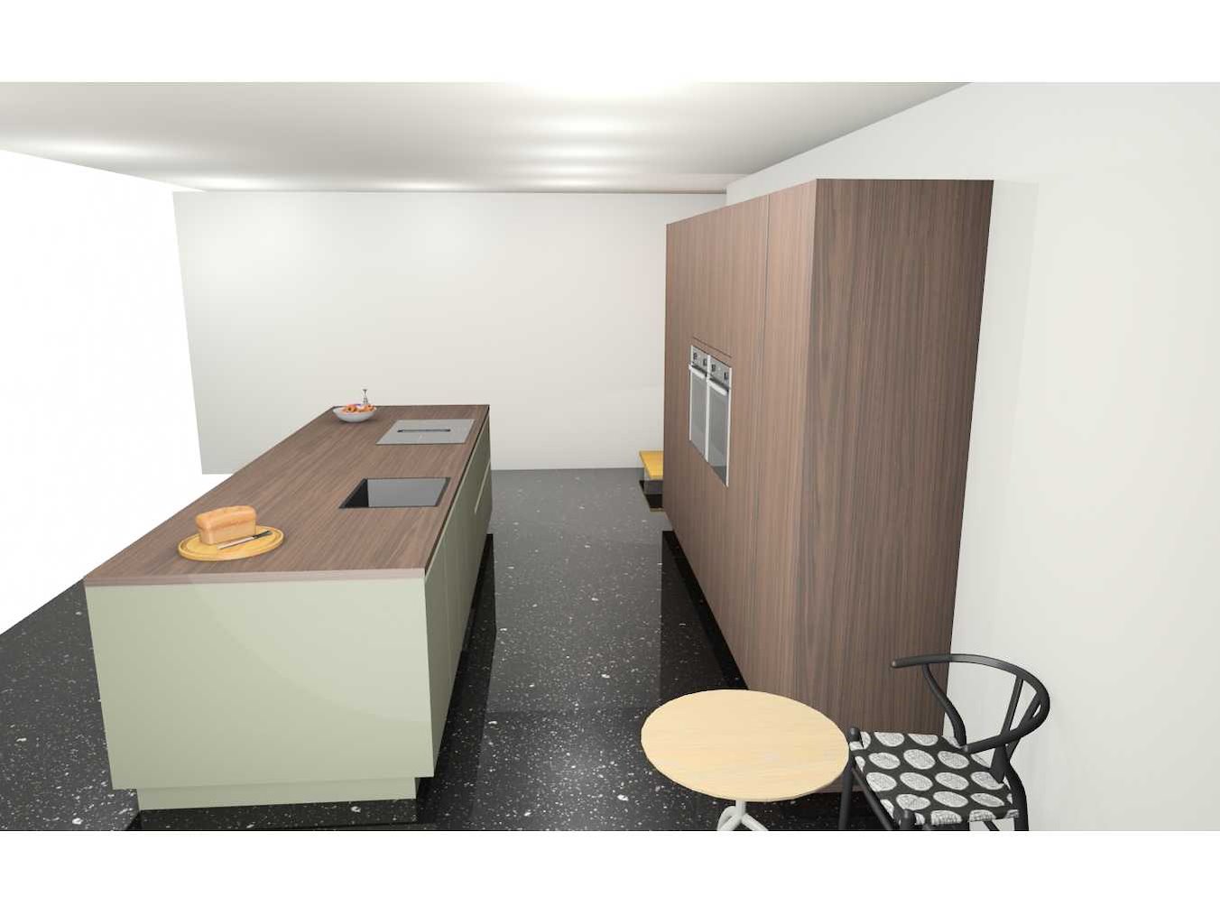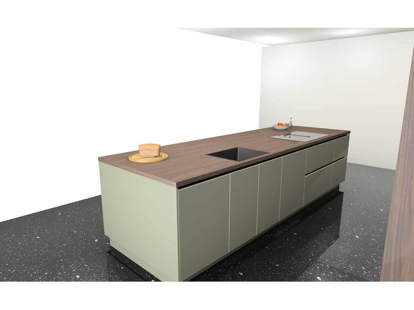 Neff V58NBS1L0, inductie afzuiging, opbouw, 80cm, 4 kookzones. Let op! Keuken in 2 kleuren. Hoge kasten Structura Decor noten Milano, Eiland: Senso Lak, olijf premium mat. Let op! Lades aan de achterkant van het eiland zijn, Push To Open systemen! Let op! Keuken staat niet opgesteld, enkel 3D tekening en wordt geleverd ongebruikt in doos. Let op! Aanrecht blad is zwaar, tijdens afhaal dag zorgvuldig meenemen en neem extra man kracht mee! Nee Merk: Nobilia Model: Structura Decor noten Milano Type keukenopstelling: Eiland Lengte: 369cm Breedte: 60cm Hoogte: 226cm Gootsteen: Reginox Amsterdam Pur 50 zwart opbouw model Werkblad hoogte: 93cm Aanrechtblad: HPL 399 Decor noten Milano 3,8cm Koelkast: Bosch KIR81AFE0 178cm, koeler Softclose: true Oven: 2x Neff B1ACE2AG3 bakoven, 60cm Vaatwasser: Neff S175HTX04E 60cm, volledig geïntegreerde vaatwasser Lengte kookeiland: 364cm Breedte kookeiland: 117cm Hoogte kookeiland: 93cm Hoofdkleur: Structura Decor noten Milano/ Senso Lak, olijf premium mat Style: Modern greeploos en Push to Open Lades