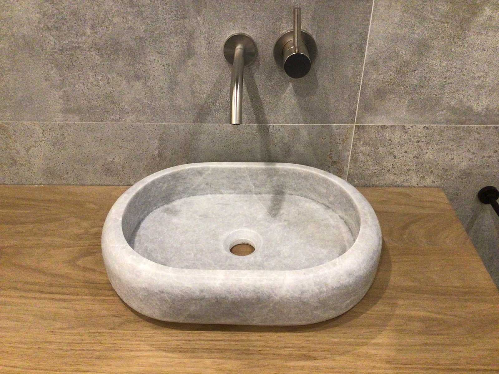 Natuursteen marmer grey oval waskom 47x34x10 cm