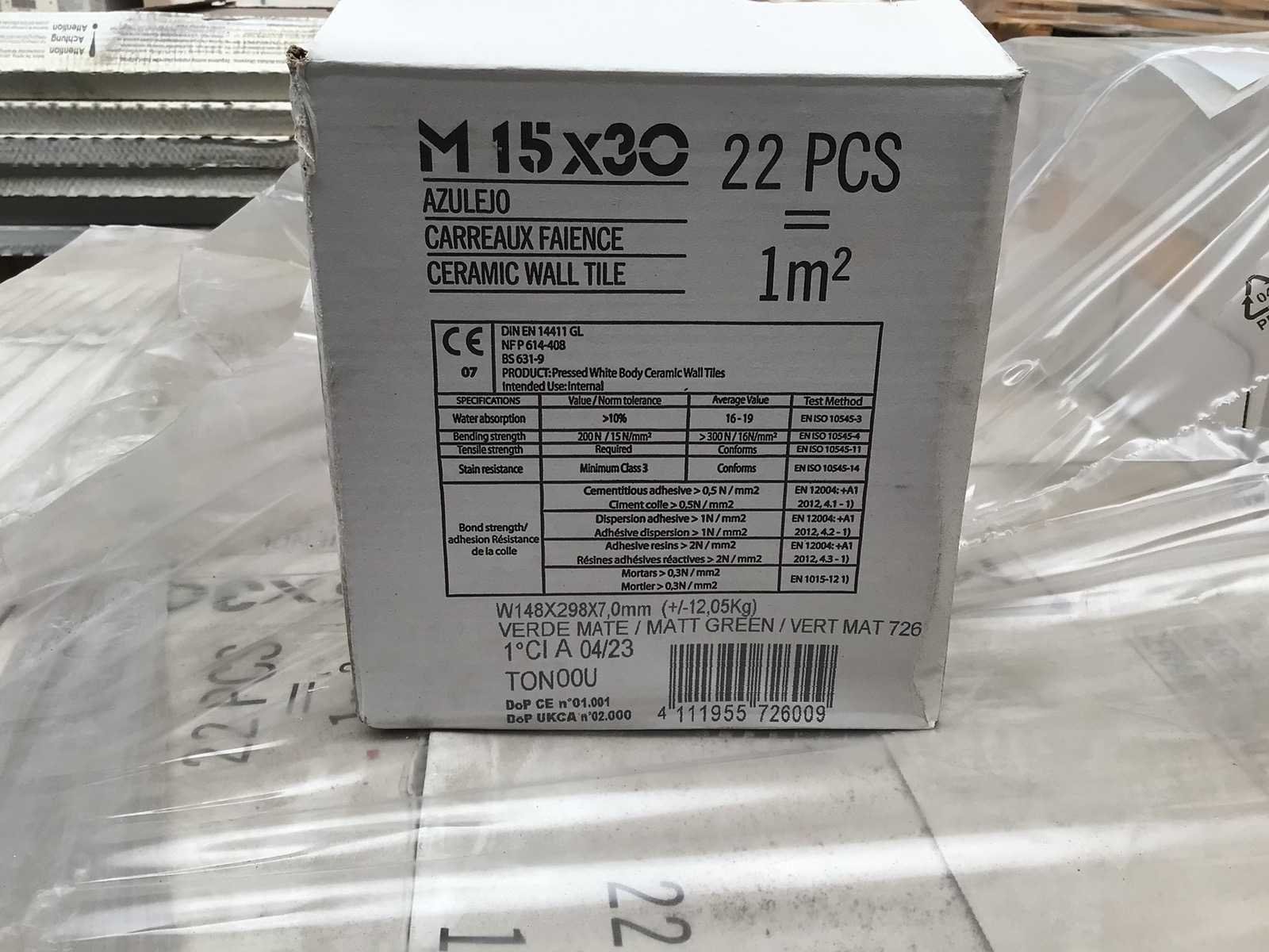 No Merk: Ceragni Kleur: Green Afwerking: Mat Lengte: 15cm Breedte: 30cm Materiaal: Keramiek Dikte: 7mm Type: Wandtegel Model: Plain 32140 Gewicht: 260kg Aantal m² per verpakking: 1m² Aantal pakken: 13
