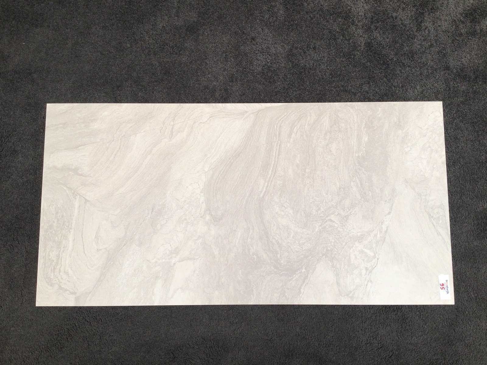 3 pallets Nee Merk: Kutahya Kleur: Atlantis White Afwerking: mat Lengte: 600mm Breedte: 1200mm Dikte: 9mm Materiaal: Keramiek Type: Vloertegel Aantal m² per verpakking: 2.16m² Aantal pakken: 28 Totaal oppervlakte: 60.48m² Totaal gewicht: 1200kg