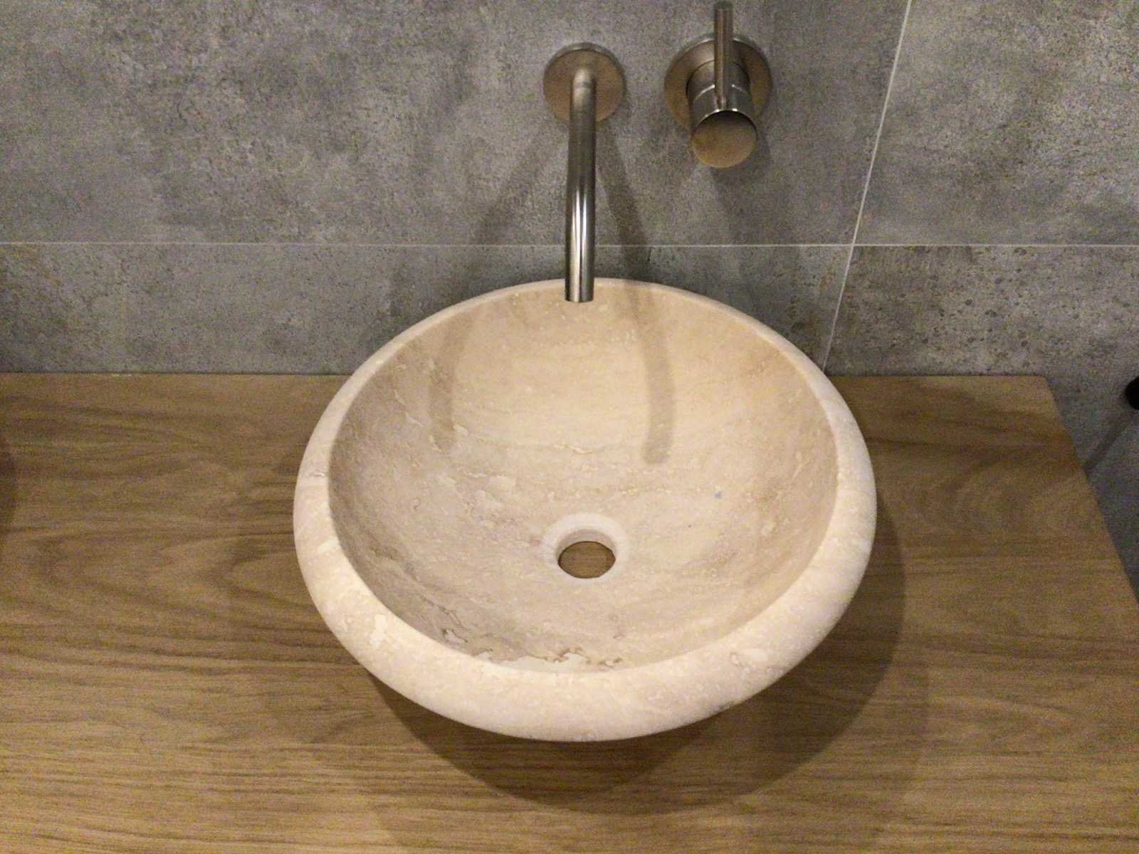 2 x natuursteen travertin beige waskom 40,6x15 cm
