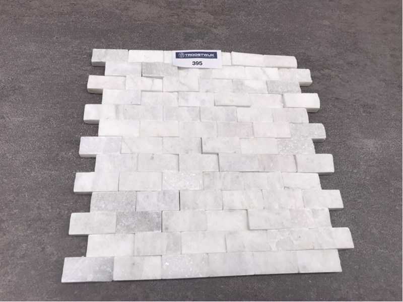 No Merk: Natuursteen Kleur: White Afwerking: Mat Lengte: 29cm Breedte: 30.5cm Materiaal: Marmer Dikte: 11mm Type: Wandtegel Model: Split Face Aantal m² per verpakking: 1m² Aantal pakken: 10 Totaal oppervlakte: 10m²