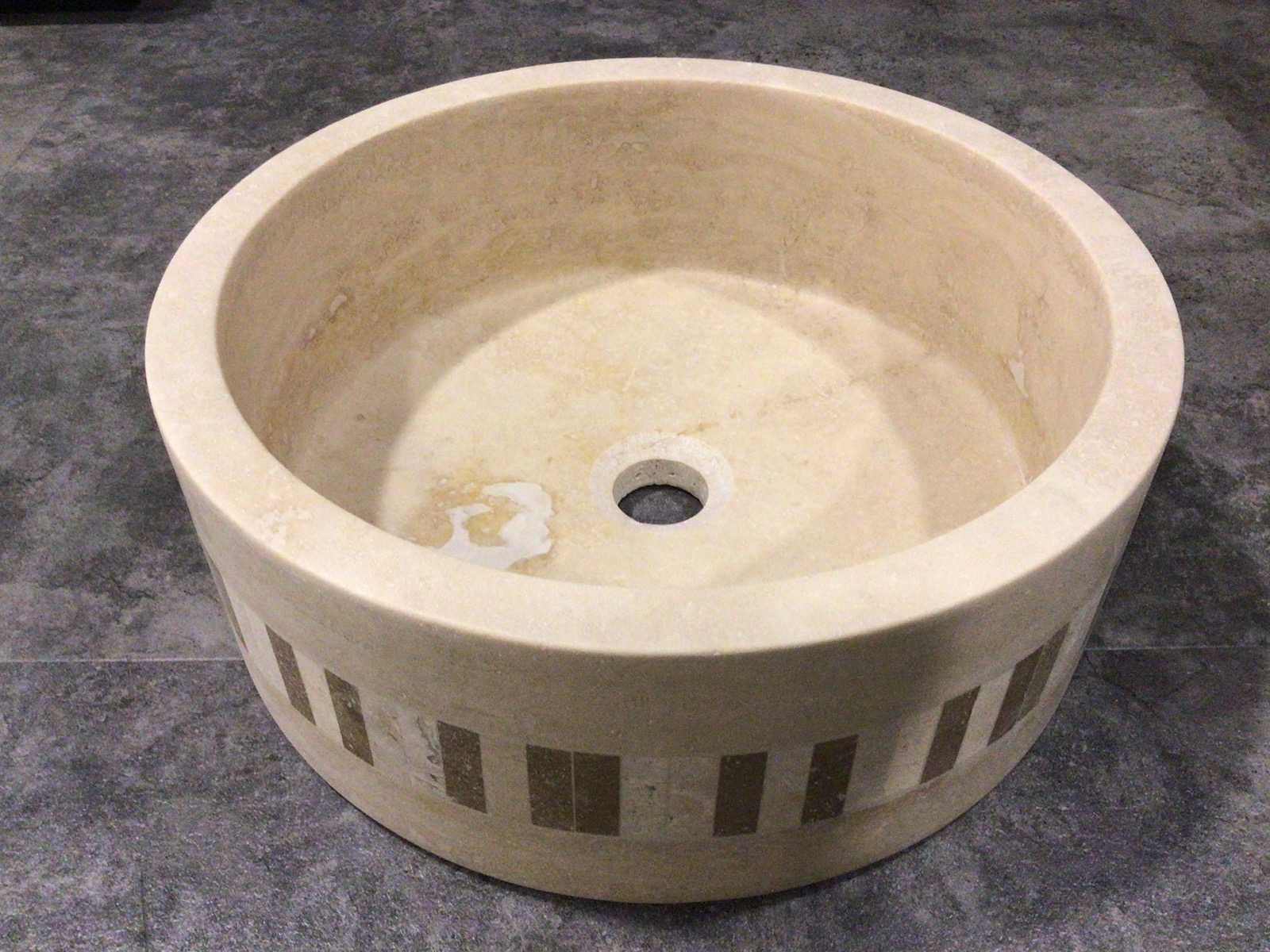 Natuursteen travertin beige silindir waskom 40,6x15 cm
