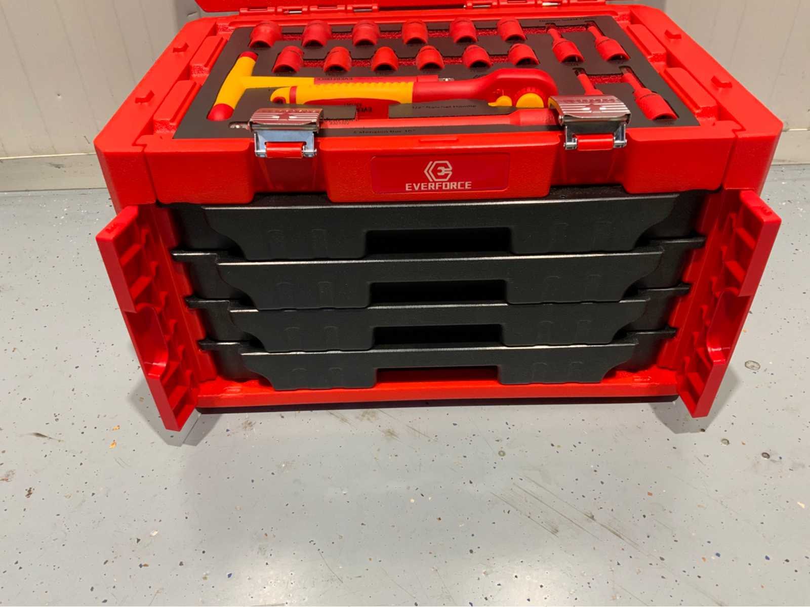 Elk stuk gereedschap is gecertificeerd - 55 pcs. Gekeurd voor 1000V, geschikt voor krachtstroom. product maat 50,7x32,9x33,1 cm verpakkingsmaat 52x35x34,5cm Nee Merk: Everforce Type: Elektra gereedschap Bouwjaar: 2026 Delig: 55 Met koffer: true