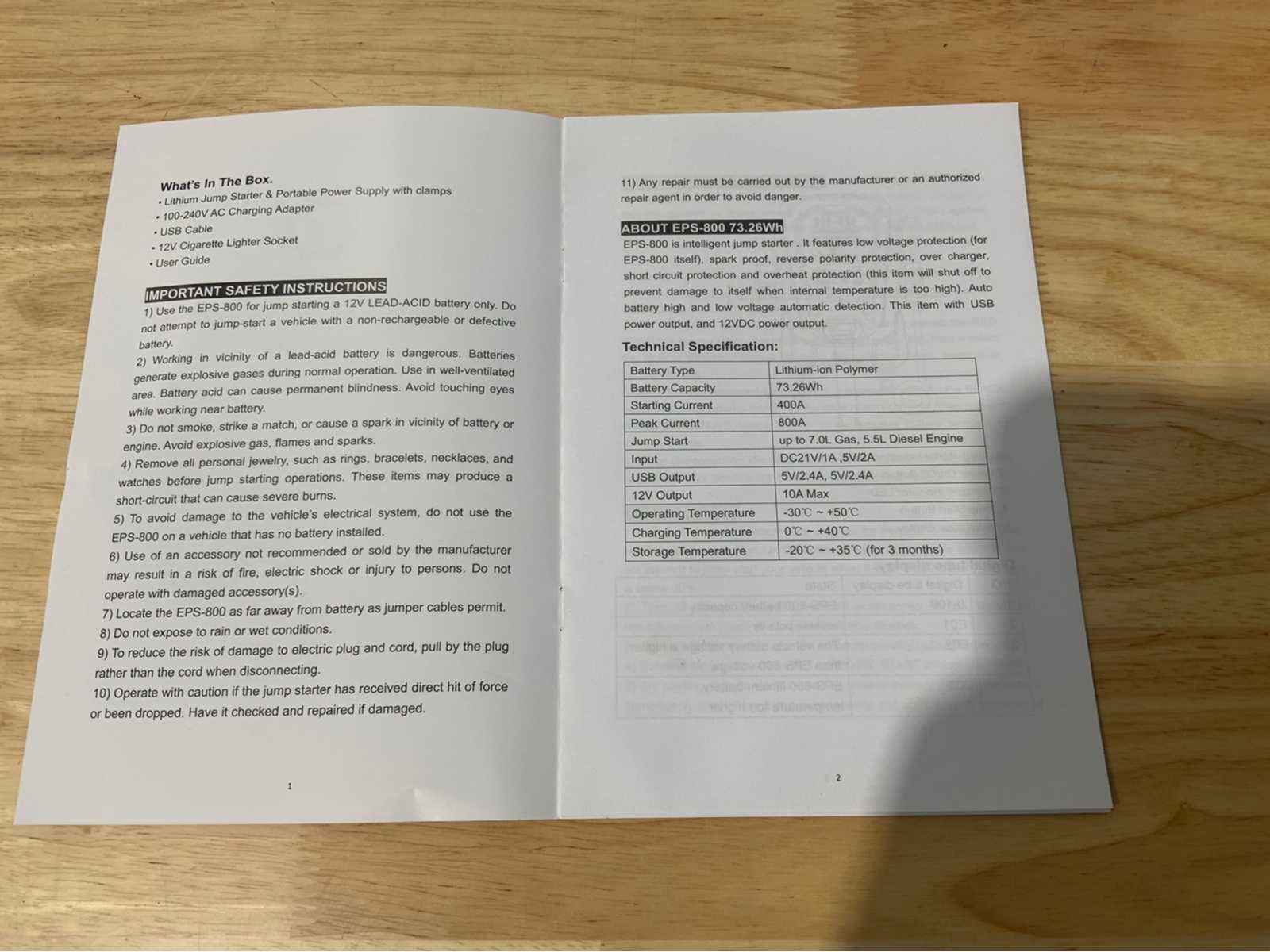 Startbooster inclusief ophangbevestiging muur. input: 21V/1A , 800A Peak current 499A Staring current Ongebruikt in doos. Nee Merk: Ultra Force Equipment Type: EPS-800 Bouwjaar: 2026 Accu lader: true